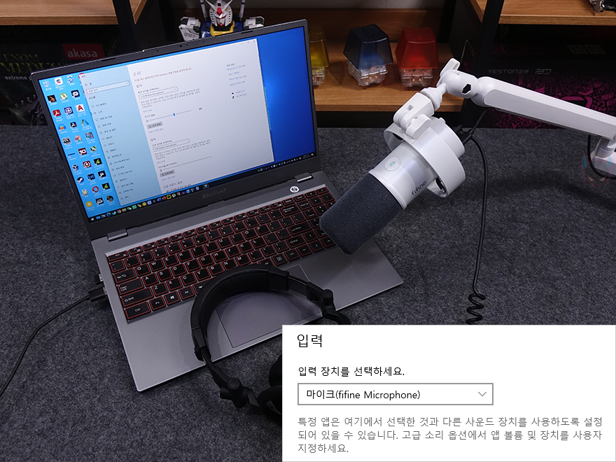 직접, FIFINE K688 XLR/USB 다이내믹 마이크를 사용해 보면, 앞서 언급했듯이 기본 쇼크 마운트가 장착되어 있어서 기본 스탠드는 마이크 붐 암에 장착합니다. 그리고, 터치 방식의 마이크 음소거(Mute) 버튼을 사용하면 음소거일 때는 레드(Red), 마이크 활성화일 때는 그린(Green) LED로 변경되죠. 또한, 마이크 후면에 3.5mm 헤드폰 잭을 통해서 헤드폰을 연결하면 실시간으로 마이크로 수음되는 사운드를 모니터링할 수 있습니다. 물론, 앞서 언급했듯이 모니터링 헤드폰 볼륨 조절도 가능하죠. 그리고, USB 연결방식으로 PC와 바로 연결했을 때 별도의 드라이버 설치 없이 장치가 바로 인식되어 사용할 수 있습니다.