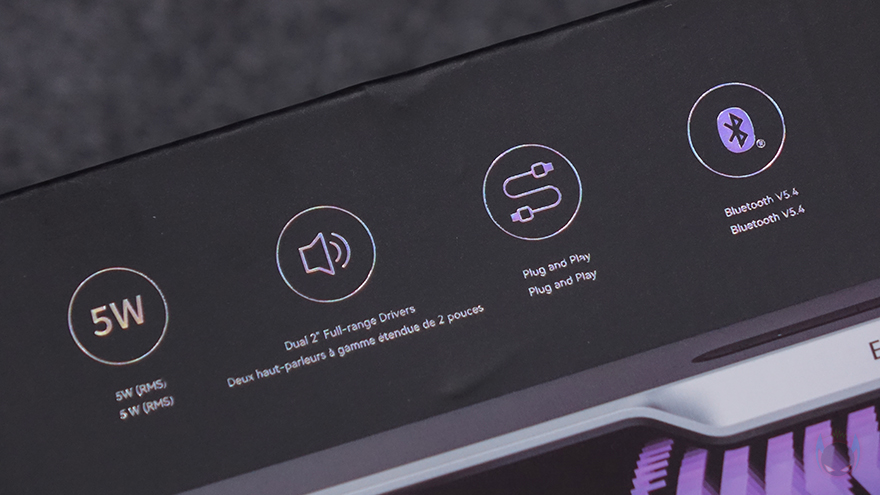 제품 패키지부터 살펴보면, 시작에서도 언급했듯이 QS30은 사운드바(Sound bar) 형태이기 때문에 제품박스도 긴 편입니다. 그리고, 박스 전체까지 밀봉처리가 되어 있어서 소비자입장에선 좀 더 판매제품에 신뢰를 가질 수 있죠. 박스 앞뒤로는 동일한 내용을 담으면서, 제품 이미지만 다르게 적용했는데, 다르게 적용된 부분은 바로 RGB 라이트닝 효과로 Q시리즈의 다른 제품들과 마찬가지로 QS30에도 인피티니 라이트 효과가 적용되었다는 걸 미리 알 수 있습니다. 그리고, 모델명과 주요 특징 8가지를 표기해 놨는데, 5W 사운드 출력, 2인치 풀-레인지(Full-range) 유닛, Plug&Play 연결방식, 블루투스 5.4 지원, 라이트 효과, 마이크 내장, 이퀄라이저(Equalizer) 지원, 앱(App) 지원을 확인할 수 있죠. 또한, 방금 언급했던 주요 특징들을 박스 양쪽 측면에 다국적 언어로도 표기해 놨으며, 밑바닥에는 어플 지원과, 색상 구분표기를 확인할 수 있습니다.