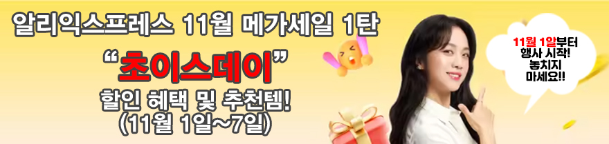 ▼알리익스프세스 2025년 11월 메가 초이스데이 할인 코드 및 혜택 정보 바로가기