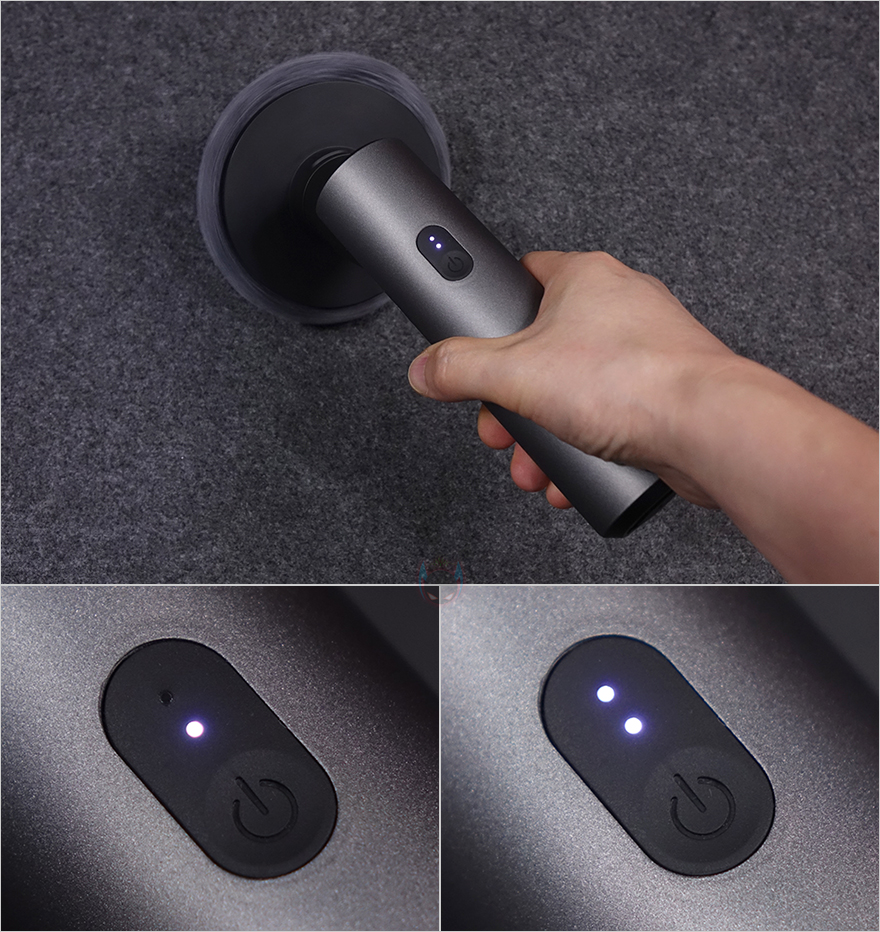 직접, HOTO(호토) 회전식 청소도구 '전기 스핀 스크러버(Electric Spin Scrubber)'를 사용해보면, 일단 전원은 전원 버튼을 1초간 누르고 있으면 켜집니다. 전원이 켜진 상태에서 버튼을 한 번씩 누르면 1단계와 2단계로 속도조절할 수 있으며, 단계별로 LED 점등도 켜지기 때문에 쉽게 구분이 되죠. 전원을 다시 끌 때는 역시 버튼을 1초 이상 누르면 됩니다. 참고로, 사용하던 단계에서 전원을 끄면 다시 켰을 때도 단계가 그대로 유지됩니다.