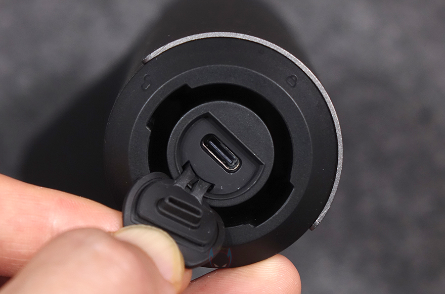 끝으로, 제공되는 USB 충전케이블은 30cm 길이에 USB Type-A to C 인터페이스를 가졌으며, 충전 케이블을 본체와 연결하면 전원 버튼 위에 배치된 LED 인디케이터를 통해 충전 상태를 확인할 수 있습니다. 참고로 충전중일때는 LED 2개가 깜빡이고, 완충이 되면 LED 2개가 꺼집니다. 참고로, 완충하면 최대 90분 사용할 수 있습니다. 그리고, 제공되는 전용 파우치 같은 경우에는 긴 막대를 제외하고 모든 구성품을 함께 담아놓고 보관할 수 있습니다.