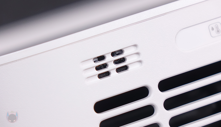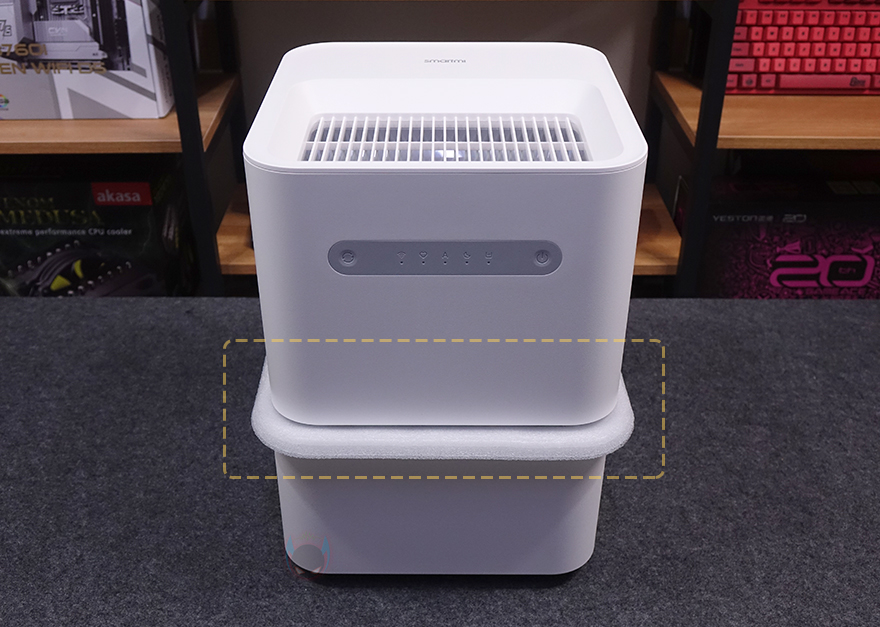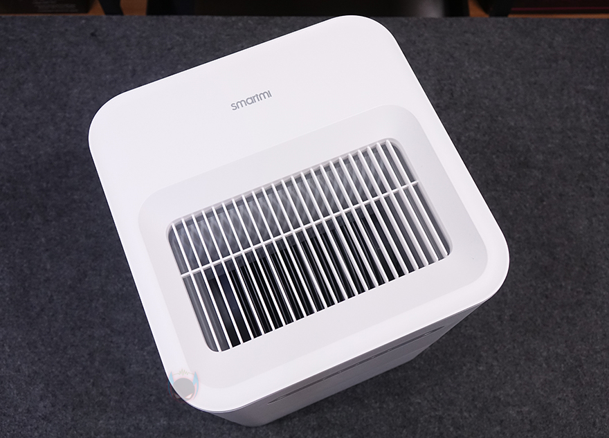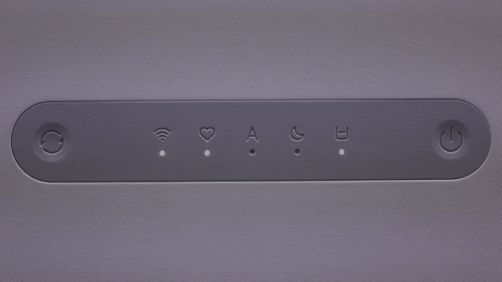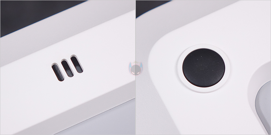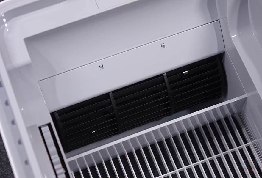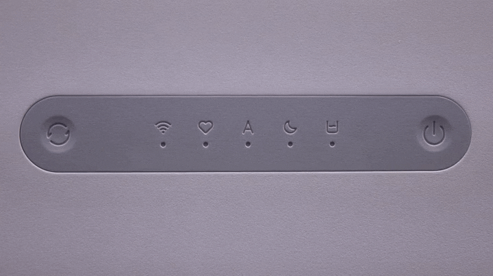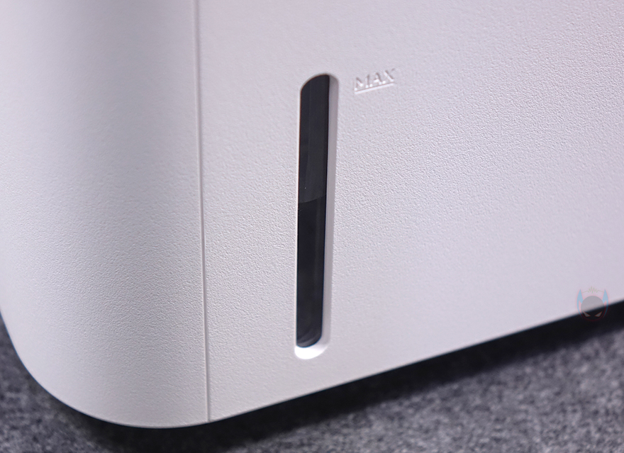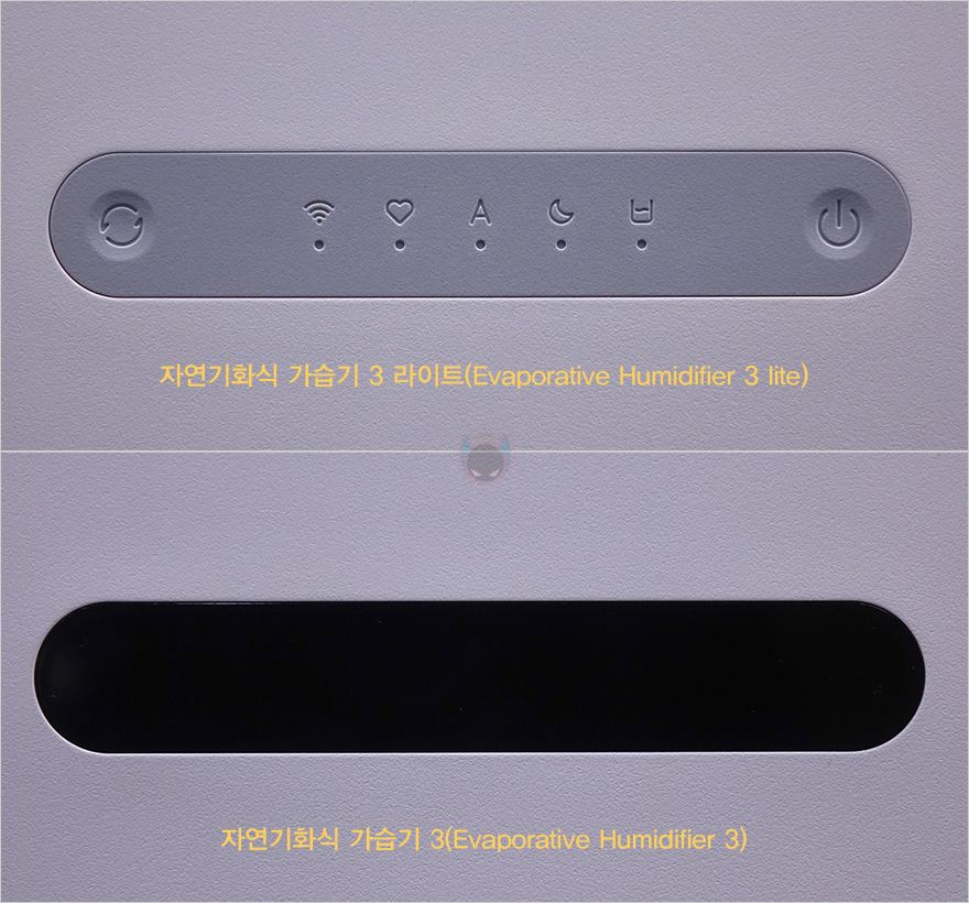 하부 물탱크 용량이 줄어들면서 제품 높이가 줄어들었기 때문에 자연기화식 가습기 3 라이트의 상부는 이전 모델과 크기와 높이가 동일합니다. 다만, 라이트 버전인 만큼 바뀐 부분도 있는데, 바로 전면에 배치된 컨트롤 부분으로 이전 자연기화식 가습기 3에서는 스마트 LED 스크린이 적용되었던 반면, 이번 자연기화식 가습기 3 라이트에서는 단순 LED 인디케이터 방식으로 변경되었습니다. 물론, 조작방식은 터치 방식으로 그대로 유지했죠. 그리고, 상부 상단도 기화 분무가 나오는 출풍구 디자인 그대로 유지했으며, 물 보충의 주입구 역할도 함께 합니다.