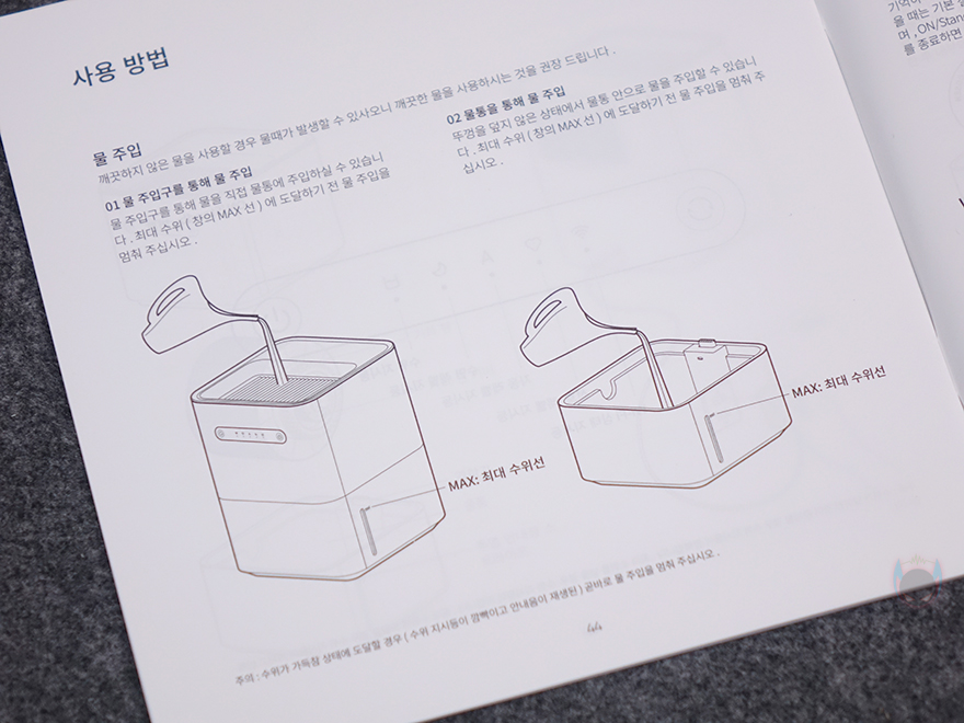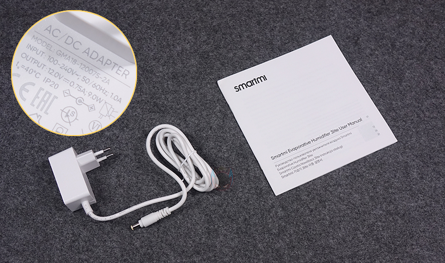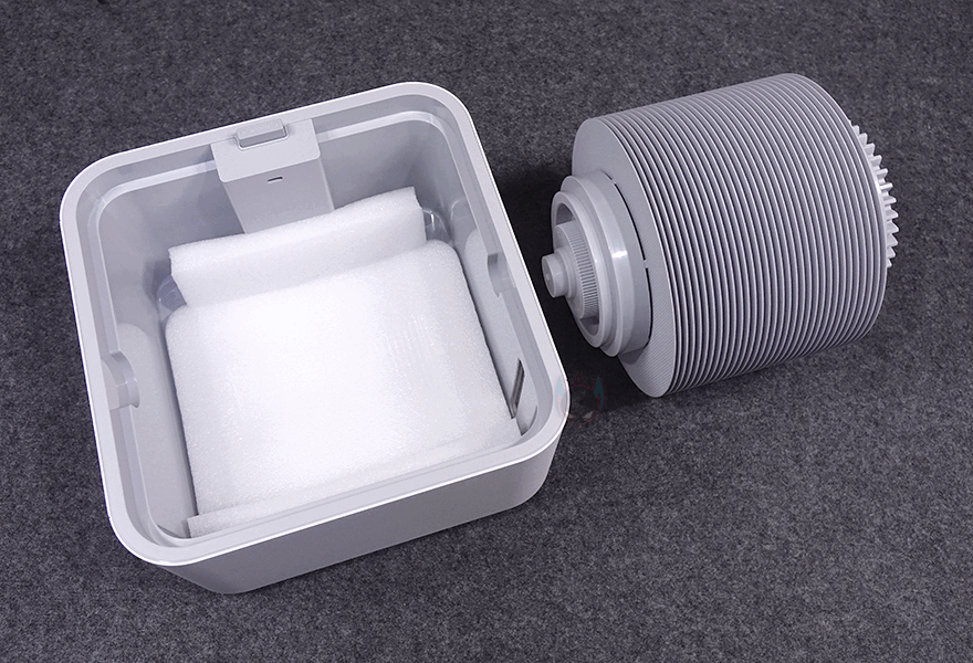 박스를 열어보면, 이전 모델에선 외부 충격 방지를 위해 일반 스티로폼을 사용했던 반면, 이번 자연기화식 가습기 3 라이트에서는 좀 더 완충 효과가 좋은 우레탄-폼을 사용했습니다. 그리고, 자연기화식 가습기 3 라이트 본체는 비닐 포장을 하고 있죠. 가습기는 제외한 나머지 구성품은 전원어댑터와 제품설명서로 이루어져 있는데, 전원 어댑터는 이전 모델과 동일하게 9W 소비전력을 가졌으며, 제품설명서 역시 이번에도 한국어도 기본 포함되어 있습니다. 참고로, 앞서 제품 기본 사양표기에서 확인했듯이 자연기화식 가습기 3 라이트의 소비전력은 7W로 이전 모델보다 2W 줄어들었습니다. 그리고, 개봉 시에는 이전 모델과 마찬가지로 자연기화식 가습기 3 라이트에도 상하부 분리구간과 하부 물탱크 안에 포장재가 들어있으며, 사용 전에 제거를 해야 합니다.