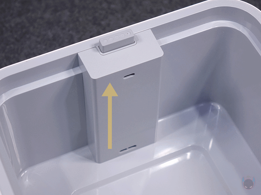 끝으로, 이번 자연기화식 가습기 3 라이트(Evaporative Humidifier 3 Lite)의 가장 큰 특징은 크기와 물탱크 용량이 줄어들었다는 점입니다. 하지만, 기화팬 디스크 크기는 이전 모델과 그대로 유지하고 있죠. 그래서, 물이 부족했을 때 작동이 멈추는 수위를 확인해 보면 측면 투명 스트라이프에서 보이지 않을 정도의 수위가 되었을 때 물 부족으로 작동이 멈추는데, 실제 내부에 남은 물 수위를 확인해 보면, 수위 센서 부분 직전까지 소모된 상태임을 확인할 수 있습니다. 이는 다시 말해, 물탱크 양이 줄어들었지만, 기화팬 디스크 크기는 동일하기 때문에 최대한 물 수위가 낮아질 때까지 작동한 다라는 걸 의미합니다. 그래서, 실제 작동시간은 이전 자연기화식 가습기 3과 자연기화식 가습기 3 라이트가 최대 14시간으로 동일합니다. 참고로, 물이 부족할 때는 전면 수위 LED 인디케이터가 깜빡입니다.