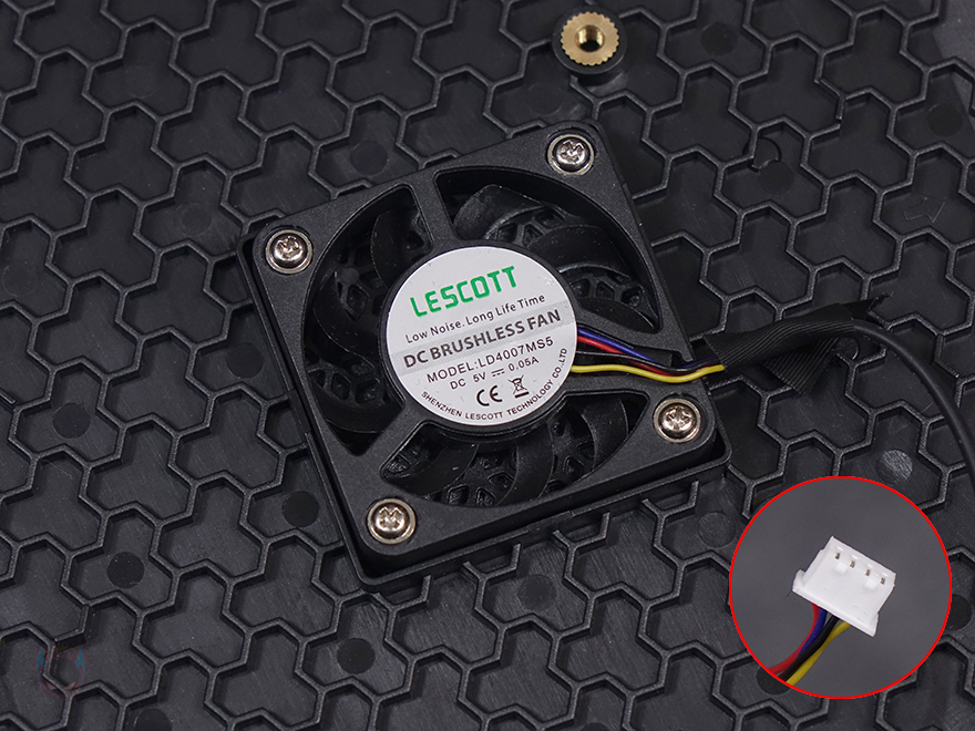 본체 후면에는 왼쪽 측면과 동일한 에어홀 처리에 아래로는 포트(Ports)들이 배치되어 있는데, 맨 오른쪽부터 DC 포트, 랜(LAN) 포트, HDMI 포트 2개, USB 3.2 Gen1 Type-A 포트 2개 순으로 배치되어 있으며, 맨 왼쪽에 리셋 버튼이 적용되어 있습니다. 본체 하단에는 중앙부분에 에어홀 처리와 함께 모서리 부근으로 받침대 역할의 패드가 장착되어 있는데, 나사형 패드 받침대(Screw Stand Pad)로 모두 풀면 하단 커버를 쉽게 분리할 수 있습니다. 분리하면 커버 안쪽 중앙 즉 외부에서 확인했던 에어홀 자리에는 40mm 팬이 장착된 것을 확인할 수 있는데 자동 속도조절 팬입니다.