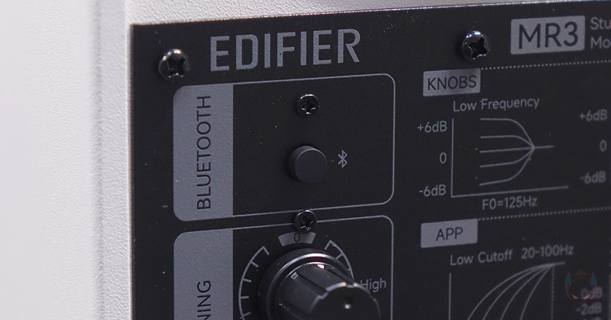 그리고, MR3 스피커에는 MR4에서 지원하지 않았던 무선 블루투스(Bluetooth) 연결을 지원합니다. 연결방식은 오른쪽 스피커 후면에 배치된 블루투스 버튼을 누르면, 앞쪽에 볼륨조절 및 모드 전환 노브(Knob) 옆에 배치된 LED 인디케이터가 깜빡이면서 페어링 모드가 시작된 걸 확인할 수 있습니다. 그럼, 연결할 기기에서 블루투스 검색을 통해 'EDIFIER MR3'가 검색되면 선택해서 연결해 주면 됩니다.