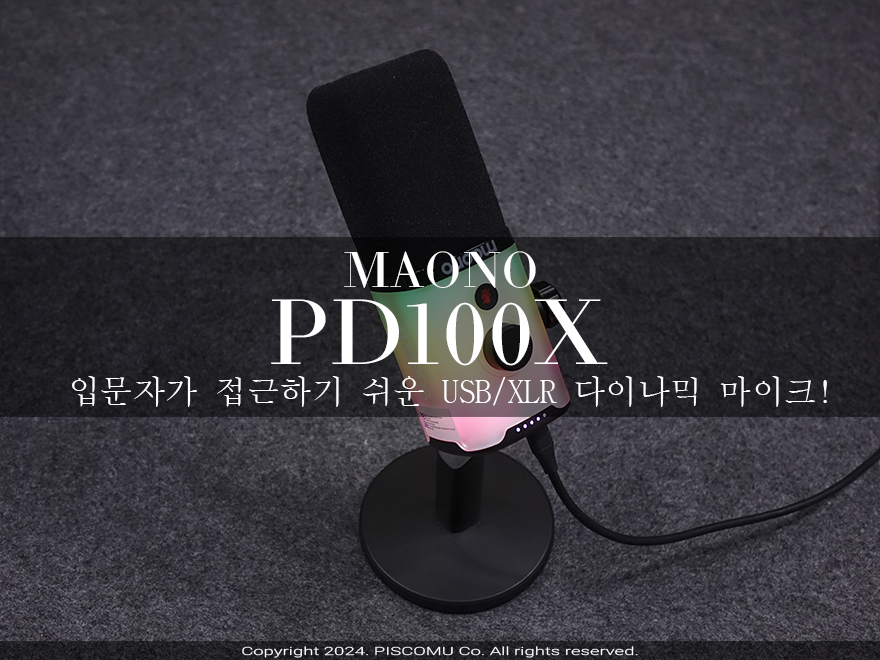 누구나 콘텐츠를 제작할 수 있는 크리에이티브 시대가 열리면서, 개인 스튜디오 공간을 꾸미는 소비자들이 많아졌습니다. 카메라, 조명과 함께 마이크는 3대 필수 장비 중 하나인데, 크리에이티브 시대가 열리면서 소비자들이 접근하기 쉬운 다양한 마이크 제품들이 나오고 있죠. 한때는 USB 콘덴서 마이크를 많이 볼 수 있었지만, 요즘은 USB 콘덴서 마이크뿐만 아니라 다이나믹 마이크 제품들도 일반 소비자가 쉽게 접할 수 있는 제품들을 많이 볼 수 있습니다. 특히, USB와 XLR 둘 다 연결지원하는 다이나믹 마이크 제품들이 최근 많이 나오고 있는데, 일반 소비자들에게도 가성비 마이크와 오디오 인터페이스 제품으로 인지도가 있는 마오노(Maono)에는 PD 시리즈(series)가 대표적인 USB/XLR 다이나믹 마이크 라인업입니다. 최상급 모델인 PD400X를 시작으로 점점 가격을 낮춰 하위 모델들이 나왔는데, 가장 최근 모델이 오늘 만나볼 PD100X이죠. 그럼, 마오노의 USB/XLR 다이나믹 마이크 라인업의 막내 모델이라 할 수 있는 PD100X를 한 번 살펴보도록 하겠습니다.