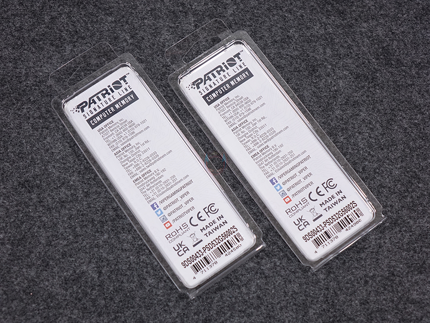 제품 패키지는 다른 메모리 패키지 제품들과 비슷하게, 외부에서도 실물을 바로 볼 수 있는 공개형 패키지입니다. 그리고, 노트북/미니 PC에 사용되는 SODIMM 규격이기 때문에 패키지 외부에서도 바로 크기가 작다라는 걸 알 수 있죠. 또한, 패트리어트는 데스크탑용과 노트북용 상관없이 방열판이 없는 보급형 라인업을 SIGNATURE LINE으로 구분하고 있는데, SODIMM DDR5 역시 방열판이 없기때문에 SIGNATURE LINE 라인업의 표기를 패키지에서 확인할 수 있죠. 패키지 포장처리는 접착처리가 아닌 개봉 재사용이 가능한 포장방식이며, SIGNATURE LINE 노트북용 DDR5-5600 32GB 메모리외에 다른 구성품은 없습니다.