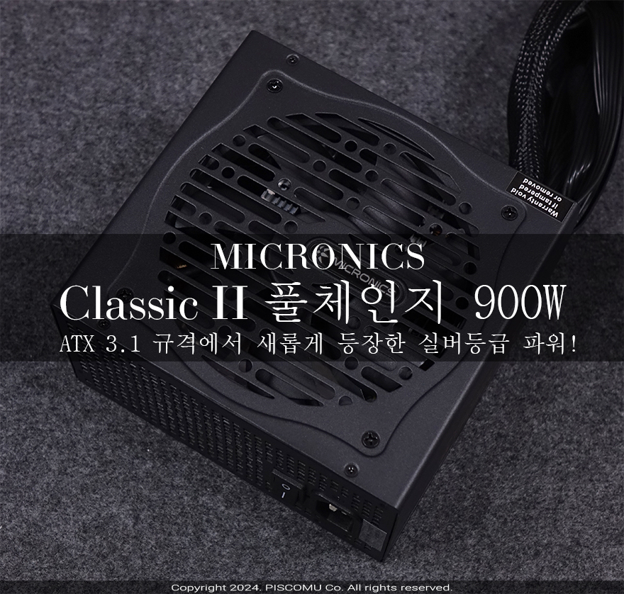 국내 파워서플라이 시장에서 소비자들이 가장 많이 선택하는 브랜드라면, 단연 (주)마이크로닉스죠. 마이크로닉스의 주력 분야이기도 한 파워서플라이는 다양한 제품군을 갖추고 있는데, 가장 대표적인 라인업 중 하나가 클래식 2 시리즈입니다. 클래식 2 시리즈는 분리형 케이블 연결방식의 풀-모듈러와 기본 연결된 케이블의 일반버전 풀-체인지 2가지로 현재 구분되고 있죠. 지난 시간에 ATX 3.1 규격으로 업그레이드된 클래식 2 풀-체인지의 화이트 모델을 만나봤는데, 클래식 2 풀-체인지는 블랙과 화이트 2가지로 출시되고 있습니다. 특히, 블랙 색상 같은 경우 최근에 900W 모델이 단독으로 출시되었죠. 그래서, 이번 시간에는 마이크로닉스 클래식 2 풀-체인지 900W 파워서플라이를 한 번 살펴보도록 하겠습니다.