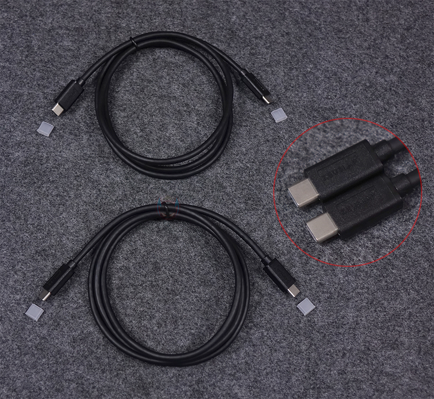 끝으로, 기본 제공되는 케이블들과 전원 어댑터를 살펴보면, 먼저 케이블 같은경우 미니 HDMI 포트에 연결되는 HDMI to Mini-HDMI 케이블이 제공되는데 길이는 1.2m이고, 양쪽 모두 금도금으로 처리해 신호손실을 최소화되도록 했으며, 사용하지 않을 시에는 먼지 유입 및 부식방지를 위해 마개를 함께 제공해주고 있습니다. 그리고, USB Type-C 포트와 연결되는 케이블은 포트 개수에 맞춰 2개가 제공되며, 역시 1.2m 길이에 양쪽 모두 USB Type-C 인터페이스를 가졌습니다. 또한, USB Type-C 케이블과 연결되는 전원어댑터 역시 USB Type-C 포트 1개가 적용된 것을 확인할 수 있으며, 기본 220V 플러그이기 때문에 국내에서도 바로 사용할 수 있고, 최대 30W 전력 지원 표기를 확인할 수 있죠.
