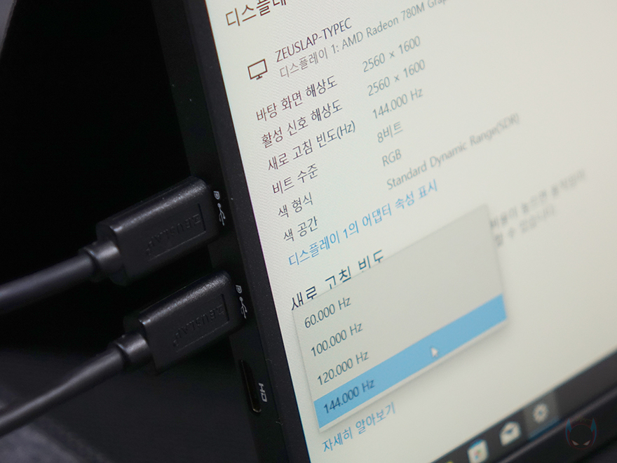 직접, 제우스랩(Zeuslap) Z18K 포터블 모니터를 사용해보면, 기본 화면비율 그러니깐 화면 전체를 채우는 비율은 16:10입니다. 그리고, 앞서 언급했듯이 모니터 입력포트는 미니 HDMI(Mini-HDMI)와 USB Type-C 2가지 방식으로 지원하는데, 먼저 미니 HDMI로 연결해 보면, 최대 해상도 2560x1600과 함께 화면주사율을 최대 130Hz까지 지원한느걸 확인할 수 있죠. 참고로, 이는 스펙상으로 지원하는 120Hz보다 한 단계 더 지원하는 걸로 확인되었으며, USB Type-C로 연결했을 시에는 역시 최대 2560x1600 해상도와 함께 최대 144Hz 화면주사율까지 지원하는 걸 확인할 수 있습니다. 실제 HDMI로 연결했을 시 130Hz 주사율을 프레임 테스트로 확인해 보면, 부드러운 움직임을 위해 더 많은 이미지가 처리되는 걸 확인할 수 있죠.