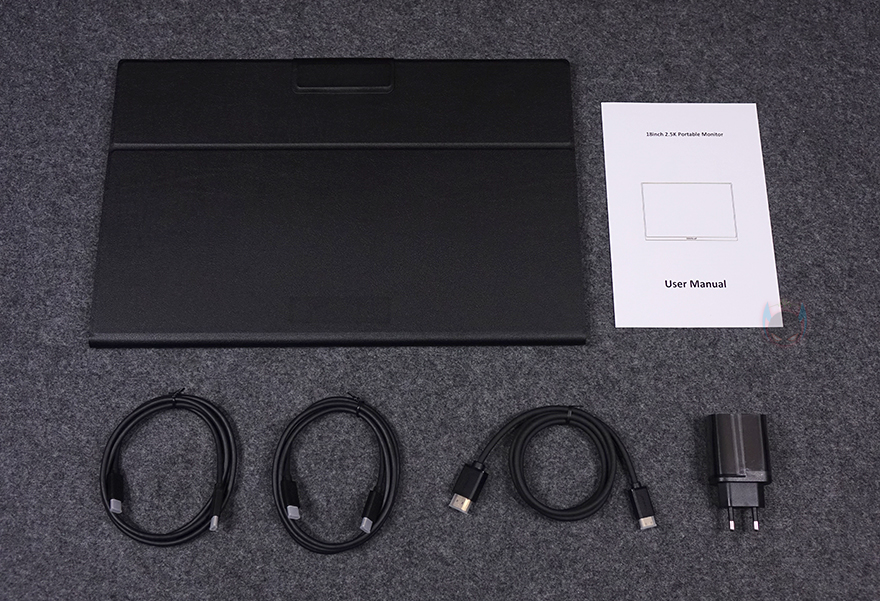 제품 구성들은 모두 비닐포장처리로 되어 있으며, 전체 제품 구성은 개봉시 보호케이블에 쌓인 Z18K 모니터, USB Type-C 케이블 2개, HDMI to Mini HDMI 케이블 1개, 전원어댑터, 제품설명서로 이루어져 있습니다. 기존의 자사 제품들과 마찬가지로 제품설명서에서 해당 모델의 기본 사양 정보를 확인할 수 있죠. 그리고, 방금 구성품에서 확인했듯이 Z18K 모니터에는 보호케이스가 기본 제공됩니다. 바깥쪽은 가죽질감이며, 3단계로 받침 각도를 조절할 수 있죠. 물론, 자석(Magnetic) 방식이라 언제든지 탈부착이 가능합니다.