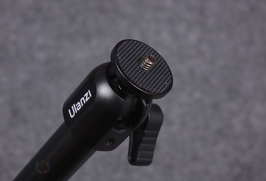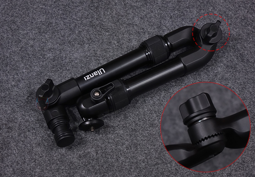 그리고, 마운트 베이스와 연결되는 막대 끝부분 역시 레버를 풀면 자유롭게 각도조절이 가능하고, 최대 각도 범위는 180˚입니다. 참고로, 중간 접이식 부분의 레버 각도 범위도 180˚이며, 카메라를 장착할 수 있는 볼헤드부분은 360˚ 회전이 가능하고, 1/4인치 볼트 규격을 가지고 있죠. 참고로 마운트 베이스와 연결되는 끝부분 역시 360˚ 회전이 가능합니다. 마운트 베이스부분은 나사 4개로 고정할 수 있게 홀 처리가 되었으며, 연결부를 고정할 수 있는 레버가 적용되어 있습니다.