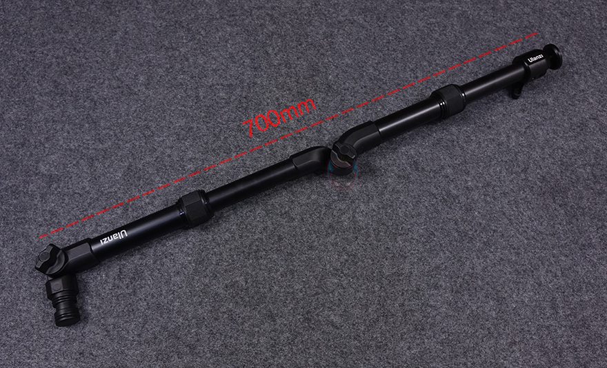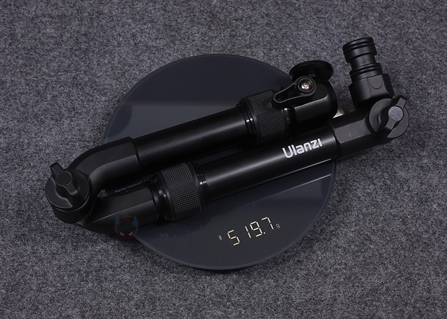 울란지(Ulanzi) ZJ04 월마운트 매직 암을 살펴보면, 개봉시에는 접이식으로 되어있으며, 레버 손잡이 부분들을 제외하면 대부분 소재가 알루미늄 합금(Aluminum alloy)으로 그대로 무게 측정을 해보면 약 520g 정도 무게감이 있습니다. 접힌 상태에서 중앙에 있는 레버를 풀면, 일자형으로 펼 수 있으며, 톱니바퀴 형태의 레버가 자유롭게 각도를 잡은 후 고정할 수 있죠. 또한, 맨 앞부분 볼헤드 위치 부분 아래에 있는 엠보싱 디자인의 레버 역시 시계 반대방향으로 돌리면 추가로 길이 확장을 할 수 있는데, 최대 약 82mm까지 늘어나며, 중간 접이식 레버 부분의 아래쪽 부분에도 엠보싱 레버가 있는데 똑같은 방식 시계 반대방향으로 돌리면 약 98mm까지 길이를 확장할 수 있습니다. 이렇게 최대 길이까지 확장하면 총길이 약 70cm까지 확장됩니다.