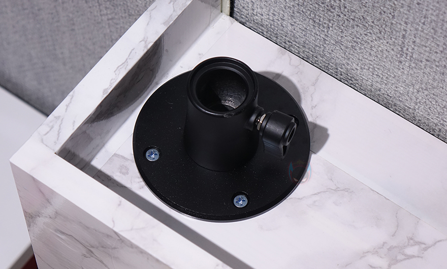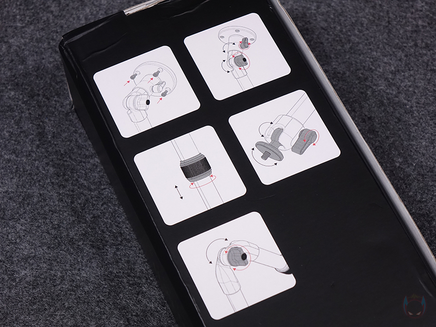 박스를 열어보면, 외부 충격방지를 위해 우레탄-폼 포장재와 함께 제품 구성품을 확인할 수 있는데, ZJ04 접이식 막대(Folding Telescopic stand), 마운트 베이스(Mount base), 베이스 고정에 사용되는 나사와 앵커(Screw&Anchor) 제공으로 이루어져 있습니다. 방금 언급했듯이 박스에 장착법이 담겨져 있기 때문에 따로 설명서는 제공되지 않습니다.