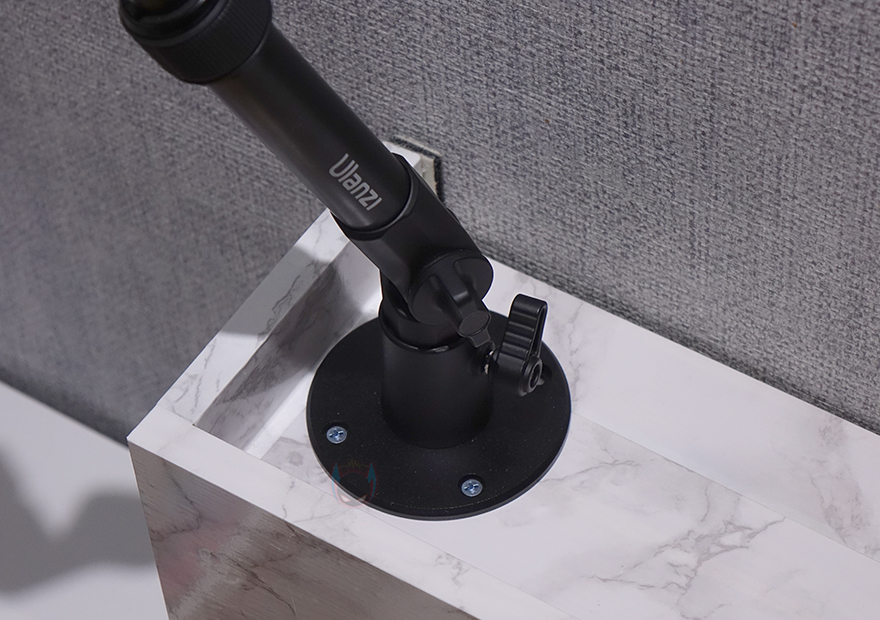 직접, 울란지(Ulanzi) ZJ04 월마운트 매직 암을 사용해 보면, 일단 장착은 마운트 베이스부터 고정을 해야 합니다. 제공되는 나사(Screw)와 앙카(Anchor)를 사용하면 되는데, 앙카는 콘크리트 같은 벽에 사용할 때 하면 되고, 테이블 등의 기타 원목 같은 재질에 고정할 때는 나사만 사용해서 마운트를 고정시켜 주면 됩니다. 마운트를 고정한 후에는 암 막대 부분의 끝부분 즉 마운트와 연결되는 연결부는 마운트 홈에 끼우고, 레버로 고정을 해주면 기본 장착은 끝납니다.