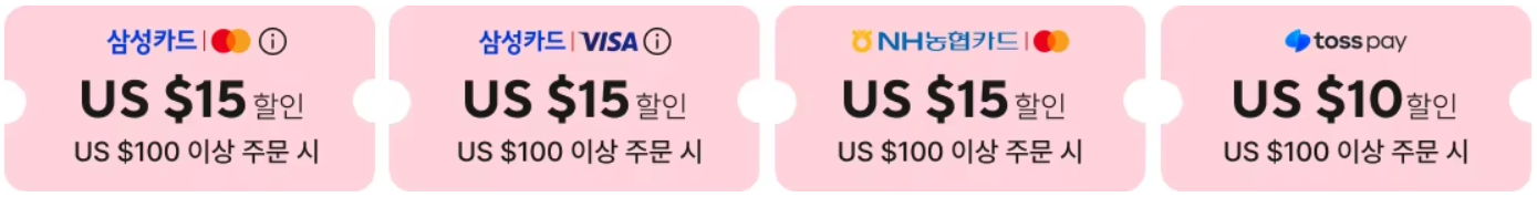 할인규모는 지난 달에 비해 줄어들었지만, 알리익스프레스 12월 프로모션 '연말 감사의 날' 역시 결제할인과 할인코드가 제공된다. 결제 할인 같은경우 삼성카드, NH농협카드, 토스페이로 혜택 받을 수 있으며, 결제 금액 기준을 참고해서 할인코듣와 함께 사용하면 더 할인 받을 수 있다. 할인코드는 아래 참고하기 바란다.