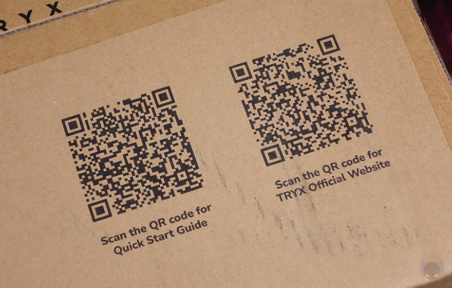 박스 측면에는 한쪽은 한국어를 포함해 제품 콘셉트 문구를 표기해놨으며, 반대쪽 측면에는 제품의 기본 사양을 표기해 놨는데, 콘셉트 문구 아래에는 뒤에서 다시 언급하겠지만, 전면 패널 구분 표시를 확인할 수 있습니다. 그리고, 기본 사용 표기에선 크기부터 팬 지원, 쿨러 및 라디에이터 지원, 그래픽카드 길이 지원 등 상세하게 되어 있어서 오프라인 매장에서 구매할 때도 충분한 정보를 얻을 수 있겠습니다. 또한, 박스 상단에는 조립 가이드와 TRYX 홈페이지 접속 QR코드를 표시해 놨으며, 박스 오픈 방법도 확인할 수 있습니다.