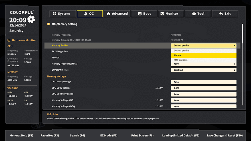 이번엔 메모리(RAM) 지원을 살펴보는데, 메모리 역시 Battle-AX Z890M-Plus V20 메인보드에서 오버클럭을 지원하며, 오버클럭 설정값 프로파일이 적용된 XMP 프로파일 메모리를 사용한다면, EZ Mode에서도 쉽게 바로 적용할 수 있고, Advanced Mode에선 역시 OC 메뉴로 들어가 Memory Setting 메뉴로 들어가면 역시 XMP 프로파일을 불러와 적용할 수 있습니다. 물론, 수동 오버클럭도 지원하기 때문에, 더 높은 오버클럭도 시도 및 적용할 수 있으며, DDR5 메모리에서부터 등장하기 시작한 단일 24GB, 48GB의 논-바이너리(non-binary) 메모리도 완벽하게 지원합니다.