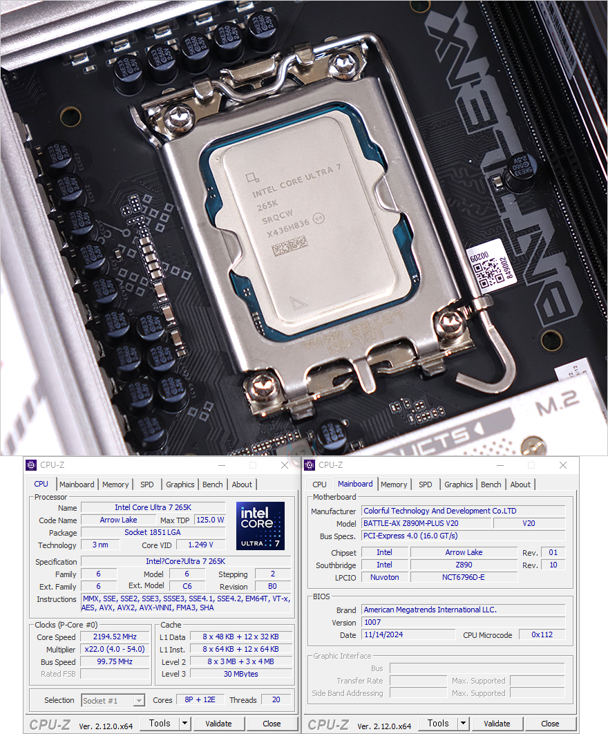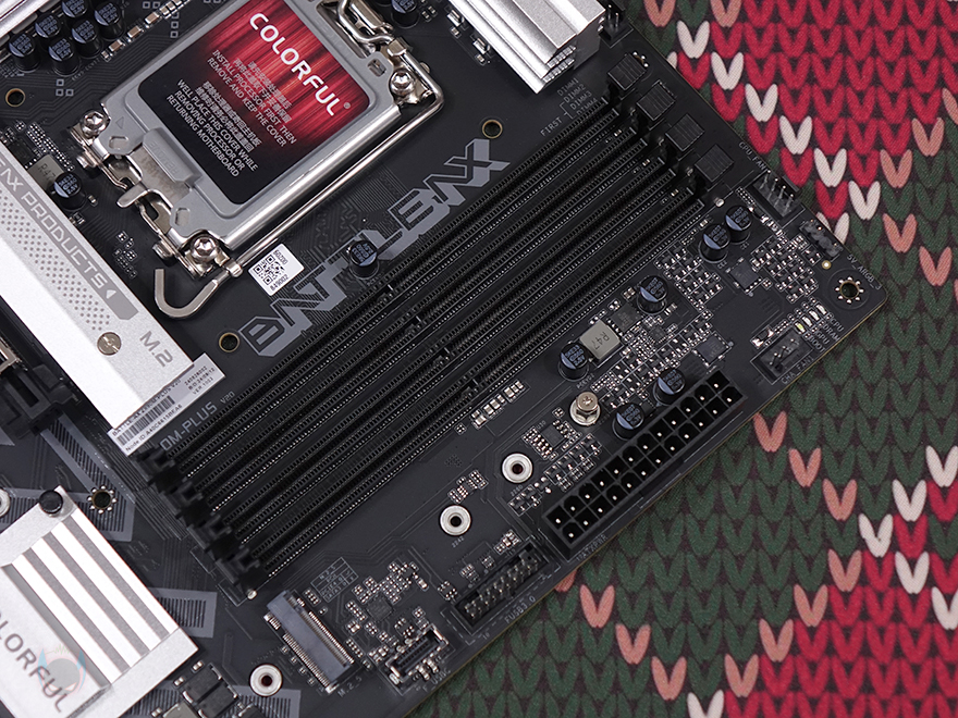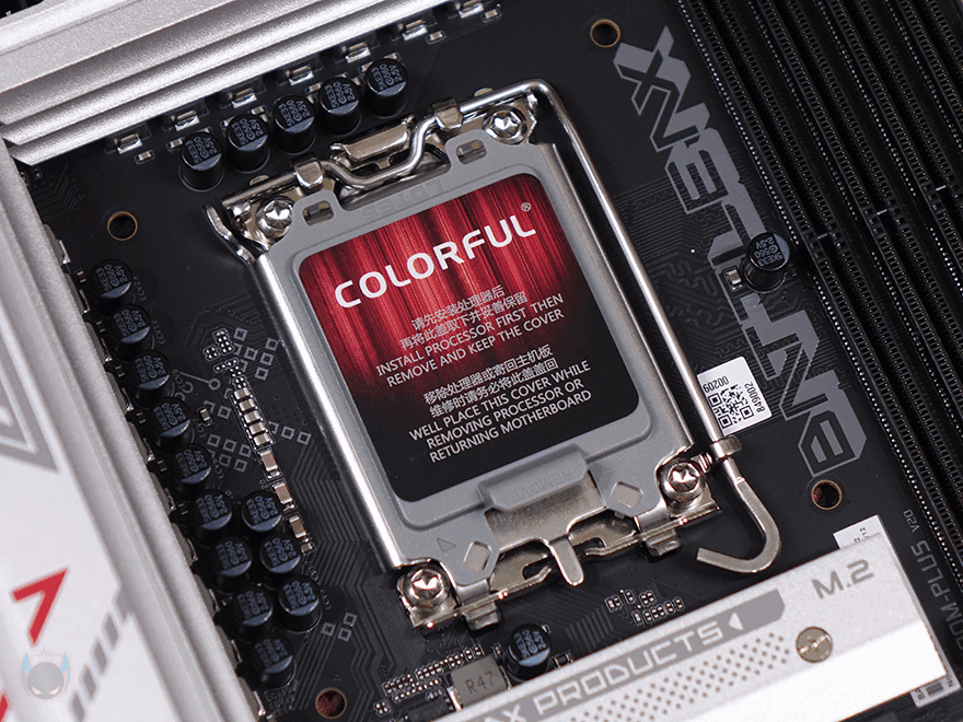 그럼, 본격적으로 컬러풀(Colorful) Battle-AX Z890M-Plus V20 메인보드의 레이아웃을 살펴보는데, M-ATX 폼 규격으로 시작에서 언급했듯이 이번 인텔 Z890칩셋은 새 CPU 코어 울트라 2 시리즈를 지원합니다. 그래서, CPU 소켓 역시 LGA1851로 변경되었으며, 소켓 부분에는 미사용 및 보관 시 먼지 유입 방지를 위해 커버도 장착되어 있습니다. 참고로, 소켓은 변경되었지만, 쿨러 장착 규격은 LGA1700과 호환됩니다.