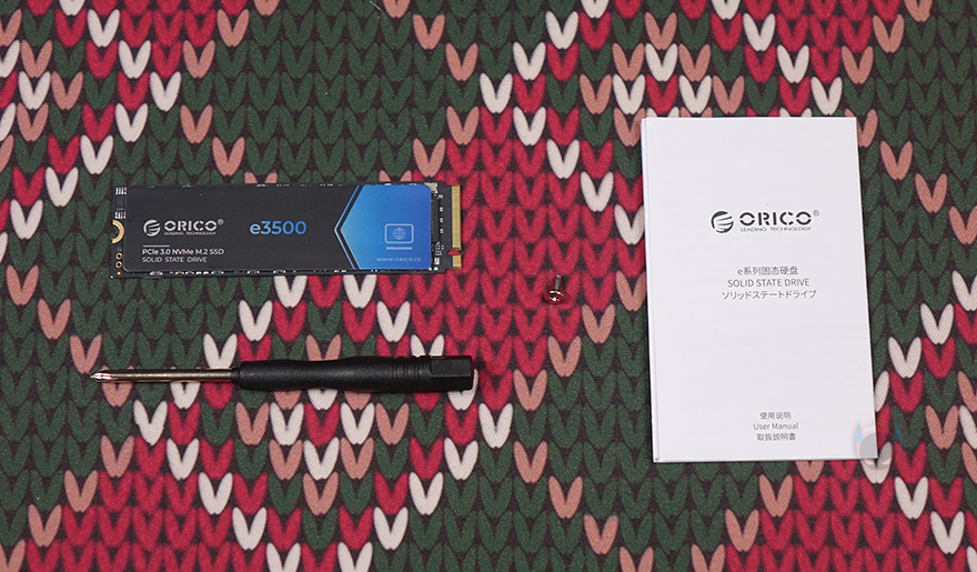박스 후면에는 제품의 기본 사양 표기를 확인할 수 있는데, 모델명을 비롯해 속도, 용량 표기까지 상세합니다. 참고로, 오리코 알리익스프레스 공식스토어에선 한국 국가배송 기준으로 256GB부터 2TB용량까지 선택 구매가능합니다. 박스를 열어 제품 포장을 확인해 보면, 포장은 흔들리지 않게 제품 크기에 맞춘 캡 방식을 적용했으며, 전체 제품 구성에는 e3500 SSD, 장착에 사용되는 나사와 드라이버 공구, 제품설명서로 이루어져 있습니다.