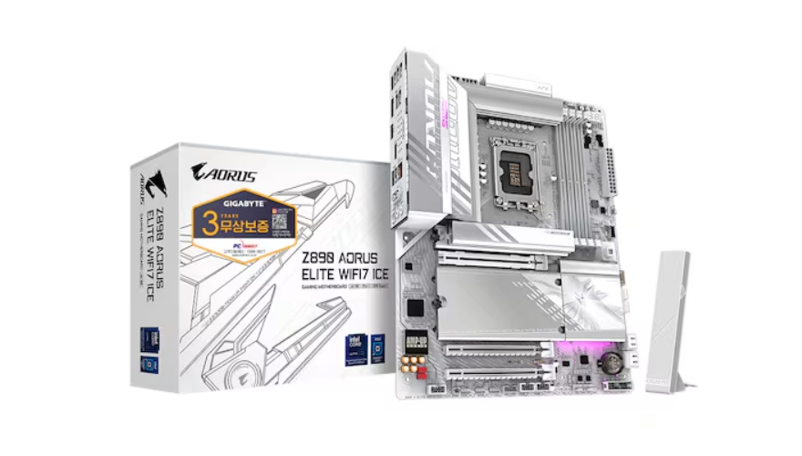 최근 인텔이 차세대 데스크탑 CPU 코어 울트라 시리즈 2 '애로우 레이크'를 출시하면서 이를 지원하는 차세대 칩셋 Z890도 공개를 했습니다. 이에 맞춰 각 메인보드 제조사들도 Z890칩셋 기반의 메인보드 제품들을 선보이고 있는데, 지금 같은 겨울철 시기에 소비자들에게 가장 끌리는 건 역시 화이트 메인보드라 할 수 있죠. 그리고, 이런 화이트 메인보드에 약 1년 전부터 진심으로 선보이는 브랜드가 있는데, 바로 기가바이트(Gigabyte)입니다. 어로스(AORUS) 시리즈에 대대적으로 화이트 콘셉트 라인업을 추가하면서 선보이기 시작한 기가바이트는 이번 인텔 Z890 칩셋기반의 메인보드에서도 이어지고 있습니다. 오늘은 그중 어로스 하면 가장 대중적인 모델인 엘리트(Elite) 시리즈의 Z890 화이트 모델 'Z890 AORUS ELITE WIFI7 ICE'를 한 번 만나보도록 하겠습니다. 그럼,