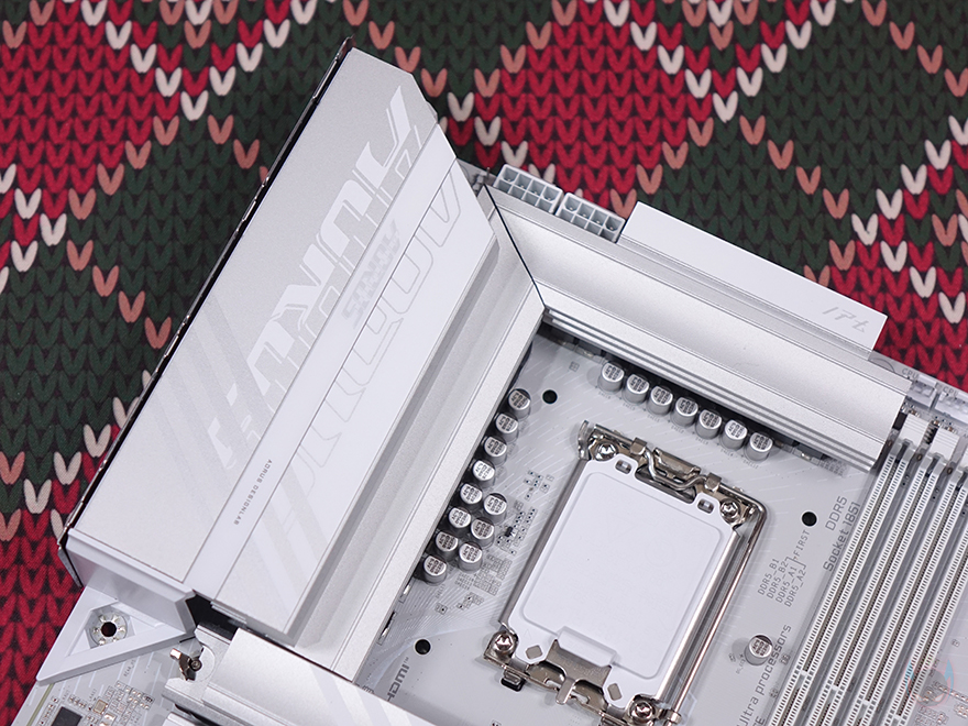 본격적으로 기가바이트 Z890 AORUS ELITE WIFI7 ICE 메인보드의 레이아웃을 살펴보면, 화이트 콘셉트답게 전체적으로 화이트색상을 적용하고 있습니다. 기가바이트는 이전 화이트 제품부터 PCB기판까지 화이트로 적용하고 있는데, 이번 제품도 PCB 앞면은 화이트, 후면은 그레이색상을 적용하고 있습니다. 부분별로 살펴보겠지만, 좀 더 화이트 완성도가 높아졌습니다. CPU 소켓 부분에는 화이트 색상의 보호캡을 적용하고 있으며, 인텔 코어 울트라 시리즈 2 CPU에선 소켓이 LGA1851로 변경되었지만, CPU 쿨러 장착홀 규격은 이전 세대인 LGA 1700과 그대로 동일하기 때문에 호환됩니다.