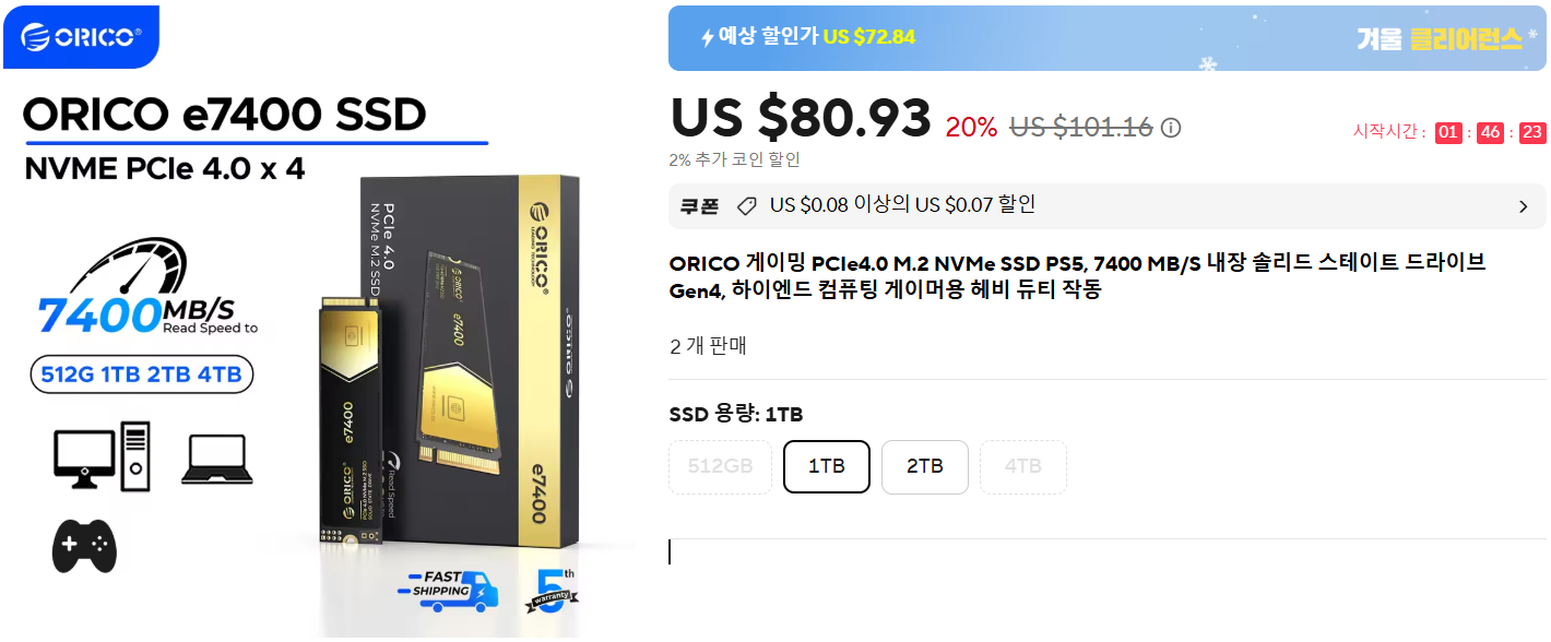 오리코는 그동안 저장장치 관련 액세서리 제품들 위주로 많이 선보였는데, 최근에는 직접 내장형부터 외장형까지 저장장치 제품들을 선보이고 있다. 특히, 내장형 SSD 같은경우에는 최근에 최신 모델들 줄줄이 출시되고 있는데, 이번에 출시한 e7400모델은 오리코의 PCIe 4.0x4 규격의 가장 최신 모델이다. 특히, 최신 모델부터는 그라핀소재의 발열해결 스티커까지 함께 부착되어서 나오고 있으니 저렴한 가격대의 PCIe 4.0x4 1TB SSD를 원하고 있었다면 참고해보자.
