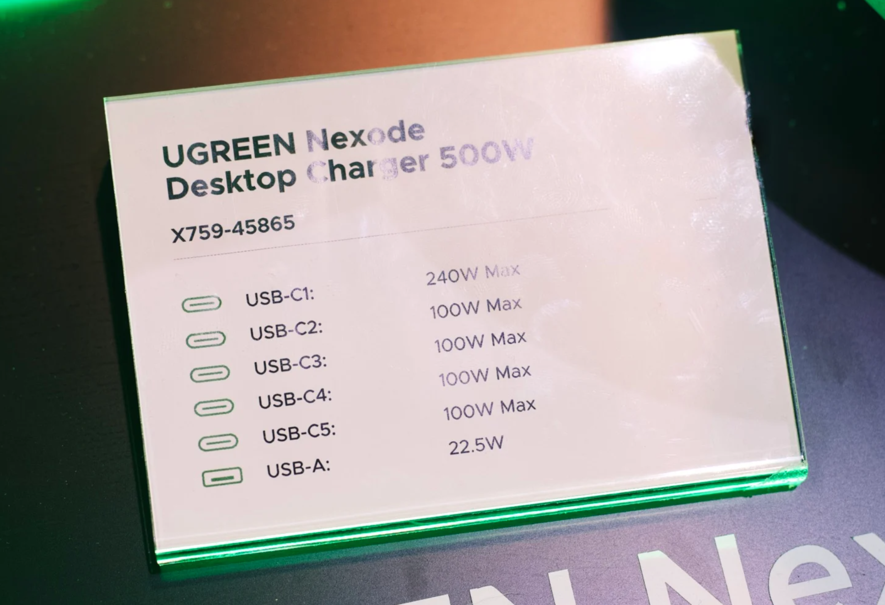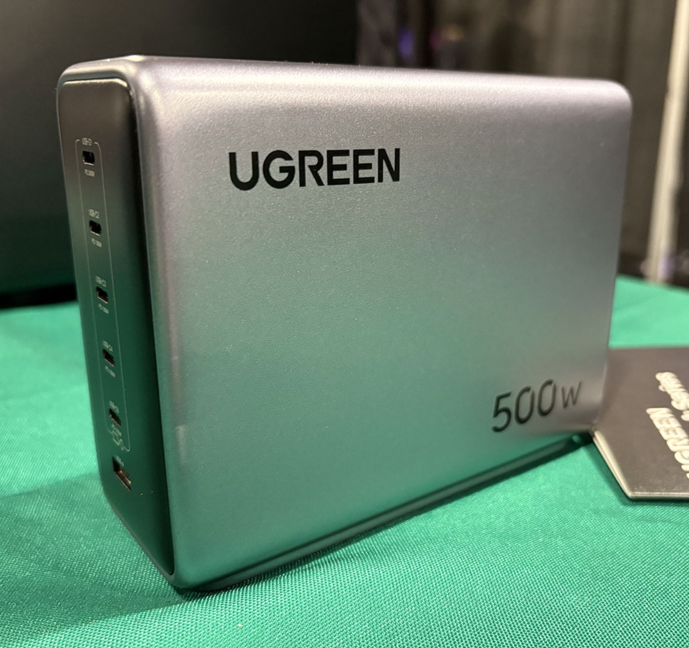또한, 이번 전시회에서 유그린의 새로운 고속충전기로 무려 500W GaN 고속충전기도 선을 보였는데, 고급화 전략 라인업인 Nexode 제품군으로 총 500W 충전지원을 하며, 총 5개의 USB 타입C 포트와 1개의 타입A 포트를 갖추고 있으면, 1번 포트는 단일 최대 240W까지 지원하며, 나머지 4개의 C포트들도 최대 100W를 지원한다. Nexode 500W 고속충전기는 3월 출시될 예정이다.