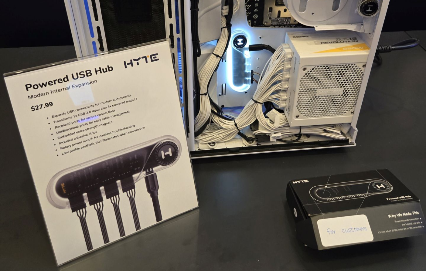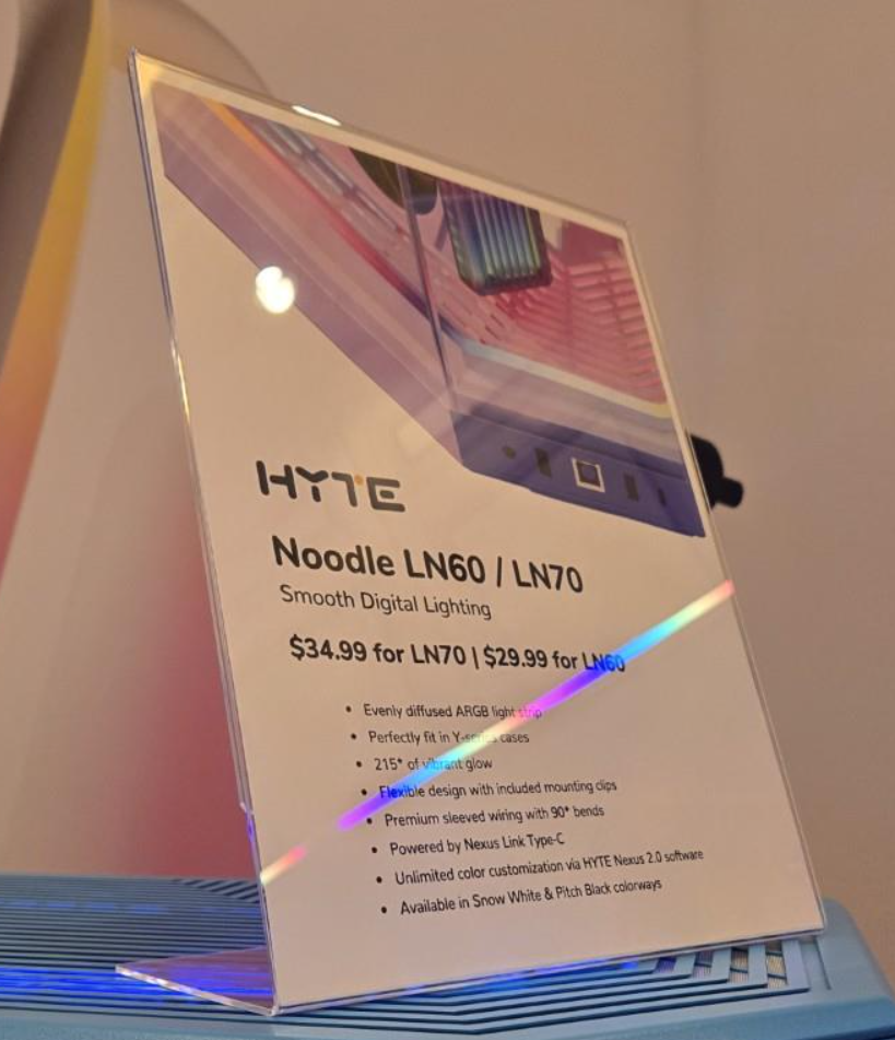 이밖에도 내장 USB헤더를 확장할 수 있는 USB 허브 장치를 선보였으며, 총 4개의 USB 헤더를 갖추고 있고, 출시가는 27.99달러이고, 마그네틱 장착 방식에 LED 조명효과도 적용되었으며, 전원 공급은 USB-C로 받는다. 또한, Y60, Y70 케이스에 사용할 수 있는 LED 스트립 제품 누들(Noodle)도 선을 보였는데, 출시가는 각각 29.99달러와 34.99달러로 역시 모두 사전예약에 들어갔다. 참고로 LN60은 Y40, Y60, Y70 모두에서 사용가능하고, LN70은 Y70 케이스에서만 사용 가능하다.