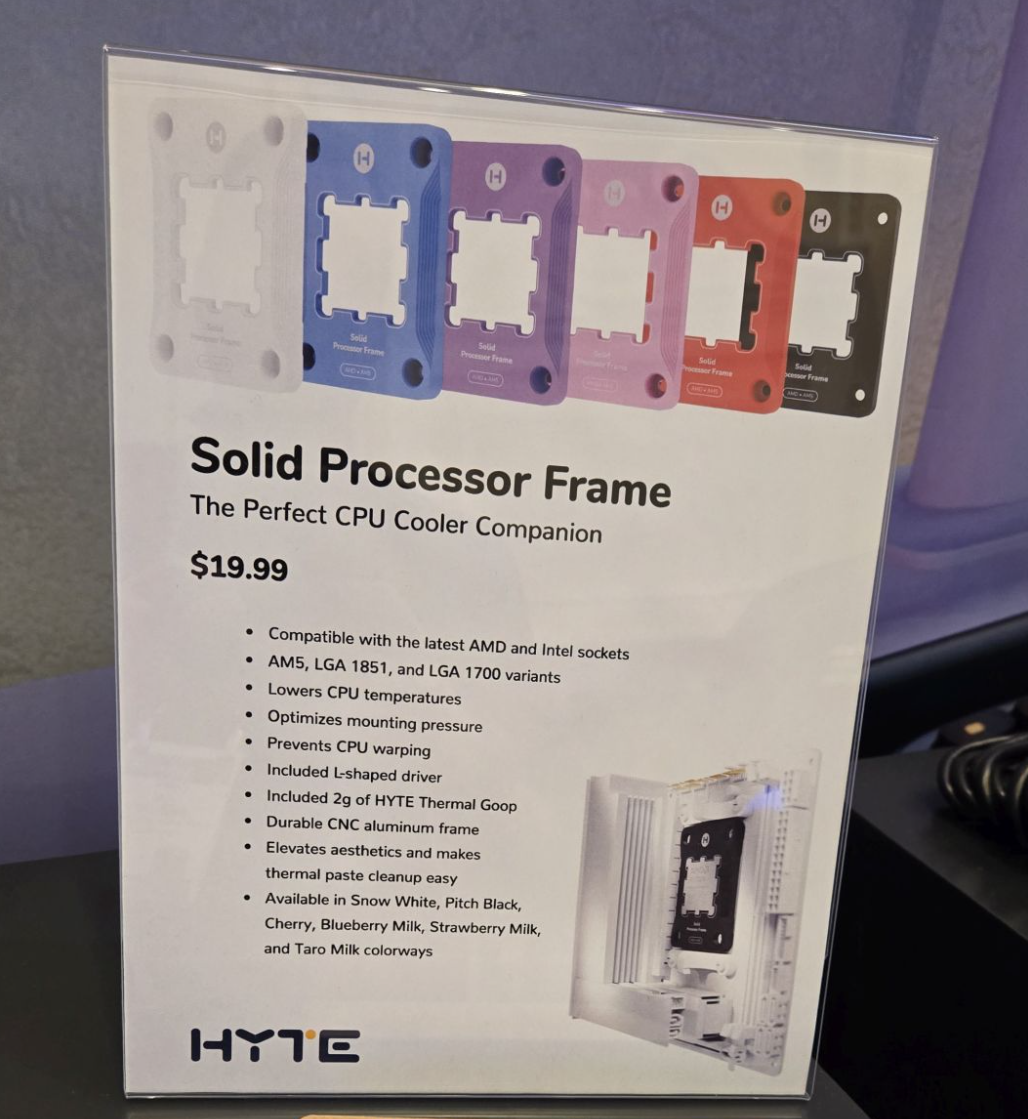 또한, 이번 처음으로 CPU 액세서리인 소켓 가이드 프레임도 선을 보였는데, 최신 인텔과 AMD 소켓별로 LGA 1700, LGA1851, AM5 3가지에 총 6가지 색상으로 출시될 예정이다. 물론, 재질은 알루미늄에 CNC 가공이고, 출시가는 19.99달러로 역시 사전예약에 들어갔다. 또한, 써멀컴파운드 제품도 이번에 처음으로 선을 보였고, 6.99달러 출시가로 책정되었다.