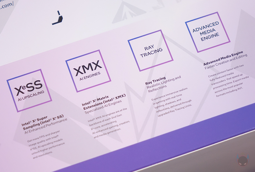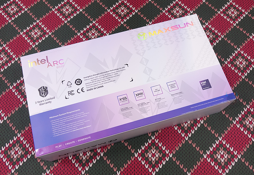 제품 패키지부터 살펴보면, 박스 전체가 밀봉처리된 상태로 소비자입장에선 판매 제품에 좀 더 신뢰를 가질 수 있습니다. 그리고, 박스 전면에는 제품 풀-샷 이미지를 담고 있어서 개봉전이 미리 그래픽카드 디자인을 확인할 수 있죠. 또한, MAXSUN 같은경우에는 ARC B580 모델을 2종 출시했는데, 그중 오늘 리뷰로 만나는 모델은 MAXSUN의 메인 간판 시리즈 라인업인 iCraft 시리즈입니다. 그래서, iCraft 로고와 모델명을 박스 전면에서 추가로 확인할 수 있고, 박스 한쪽 측면에는 큼지막하게 B580이라고 표시도 해놨죠. 박스 후면에는 3년 보증기간과 인텔의 대표적인 그래픽기술 XeSS, XMX, 레이트레이싱, AV1 인코딩 지원 표기를 추가로 확인할 수 있습니다.