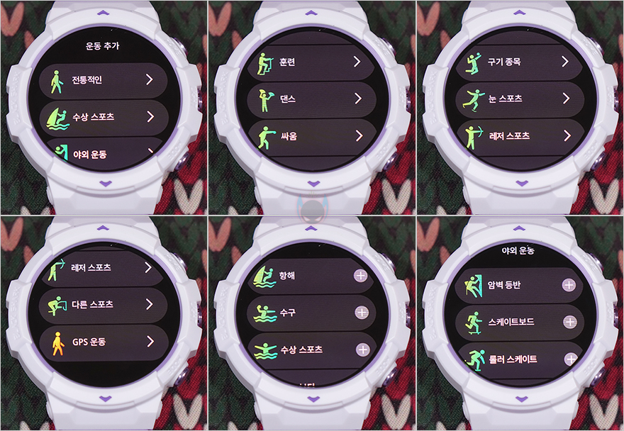 블랙샤크 GS3 SPORT 스마트워치의 주요 특징은 앞서 언급했듯이 먼저 나왔던 GS3보다 운동모드가 더 강화된 제품이라 좀 더 운동모드를 살펴보면, 스마트워치 자체에 다양한 운동모드를 내장하고 있습니다. 일단 기본목록에서 확인할 수 있는 운동모드는 5가지 GPS 운동모드를 비롯해 총 26가지 목록을 확인할 수 있으며, 이 중 다른 운동모드를 추가하고 있으면 삭제하면 됩니다. 추가할 수 있는 운동모드에는 총 10가지 대분류와 함께 대분류로 들어가면 다양한 운동모드들을 확인할 수 있고, 원하는 운동모드를 선택하면 추가됩니다. 참고로 GS3 스마트워치에는 100가지 이상이었고, GS3 SPORT 스마트워치는 20가지 이상 추가되어 120가지 이상 운동모드를 지원합니다. 그리고, GPS 운동모드를 선택해서 운동을 시작하면 Shark Fitlife 앱에서 운동기록을 경로부터 시작해서 거리, 심박수, 페이스, 스텝 등의 기록된 정보를 확인할 수 있죠.