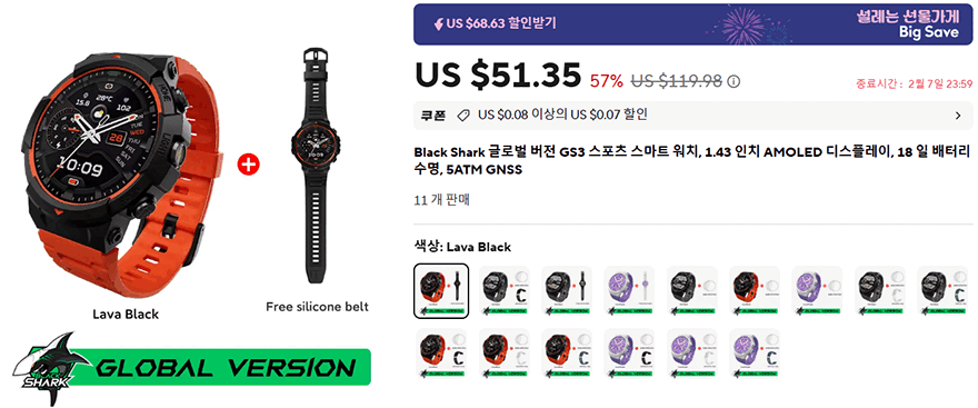 샤오미로 인수되면서 모바일 게이밍 브랜드로 국내 소비자들에게도 알려진 블랙샤크(Black Shark)에서 최근 꾸준한 행보를 보여주는 웨어러블 제품에 GS 시리즈 최신 모델로 출시한 GS3 SPORT 스마트워치는 샤오미의 또 다른 가성비 스마트워치라 할 수 있습니다. 정확히는 레드미워치 5 라이트와 비슷한 가격대에서 선택할 수 있는 또 하나의 가성비 제품이죠. GS3 SPORT 스마트워치는 전형적인 원형 디자인에 스포츠 시계 디자인 감성을 잘 표현하고 있으며, AMOLED 디스플레이에 60Hz 주사율도 갖추고 있습니다. 여기에 블루투스 전화통화 기능도 갖추고 있으며, 계산기나 게임 같은 차별화 기능도 탑재했죠. 특히, 스포츠(SPORT) 콘셉트답게 기존 GS3보다 운동모드를 더 추가했고, GPS도 내장되었기 때문에 운동 목적의 스마트워치를 가성비로 구하고 싶었던 소비자에겐 안성맞춤 제품입니다. 물론, 산소포화도 수동측정이나 여전히 완성도가 조금 아쉬운 한글 번역은 있지만, 새로운 모델이 나올 때마다 많이 개선되는 느낌을 주고 있어서 큰 아쉬움은 아닙니다. 오히려, 스트랩도 기본 2개 제공이라 추가 비용 부담도 없어서, 국내 높은 환율을 고려해, 저렴하면서도 괜찮은 사양을 갖춘 운동 목적의 가성비 스마트워치를 원했다면, 샤오미 블랙샤크 GS3 SPORT 스마트워치를 추천합니다.