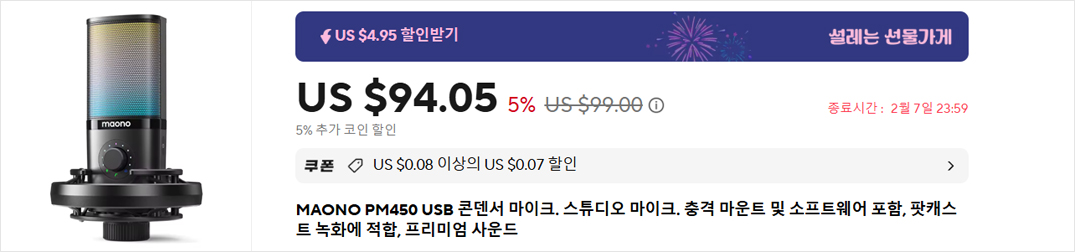 스트리밍 방송이나 개인콘텐츠 제작에 있어서 마이크 장비를 필수이다. 그래서, 개인 콘텐츠 제작환경에 마이크를 가성비로 찾는 소비자들도 많고, 이와 관련된 제품들도 많이 나온다. 마오노는 이미 국내 소비자들에게도 이런 가성비 브랜드로 잘 알려져있는데, 최근 출시한 PM450 USB 콘덴서 마이크 역시 자사 최상급이나 가성비 제품이다. 팟개스터와 스트리밍 전용 프로그램을 제공하기때문에 환경에 최적화라할 수 있다. 이번 프로모션에 할인상품이니 필요했다면 참고해보자.
