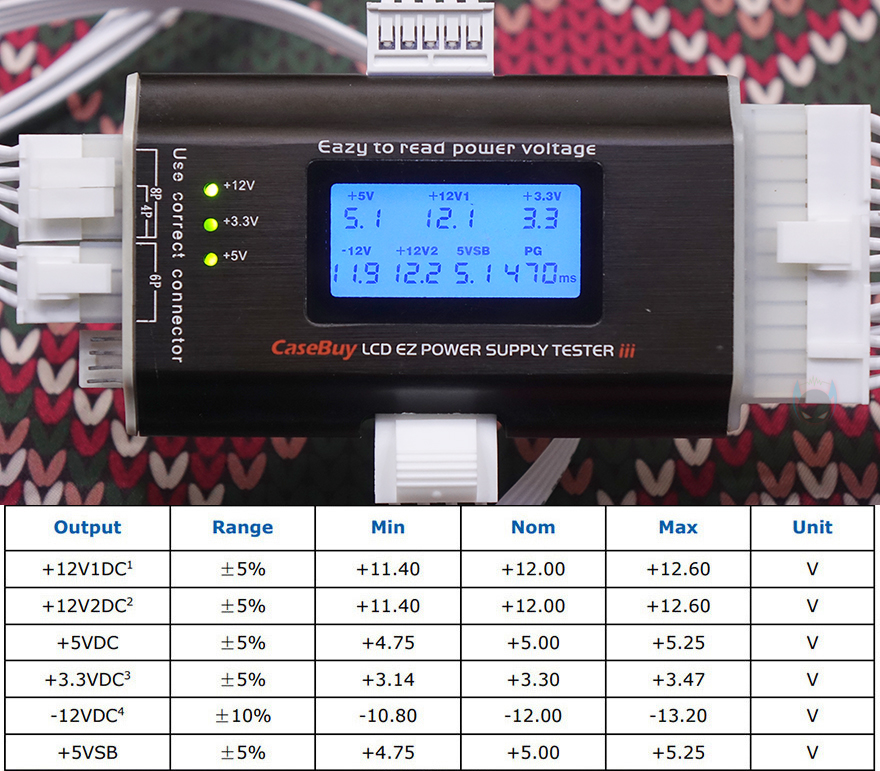 직접 Antec(안텍) GSK 850W 화이트 파워서플라이를 사용해보면, 일반 PC시스템 기반에서 OCCT 프로그램을 통해 주요 전압인 12V와 5V 전압의 출력상태를 확인해 볼 텐데, 그전에 앞서 언급했듯이 그리고 먼저 만난 GSK 750W 모델과 마찬가지로 GSK 850W 화이트 모델도 제로팬 기술이 적용되어서 하이브리드 스위치를 On으로 켜면 일정 온도(약 40℃)에 도달하기 전까지는 팬이 작동하지 않는 무소음입니다. 물론, 하이브리드 스위치를 Off로 하면 전원이 들어오는 순간부터 팬이 작동하죠. 이용자의 사용환경에 따라서 선택하면 됩니다. 그리고, 기본작동상태에서 전압출력 상태를 확인해 보면, 인텔 파워서플라이 가이드 기준의 안전 범위에서 정상적으로 작동되는 걸 확인할 수 있습니다.