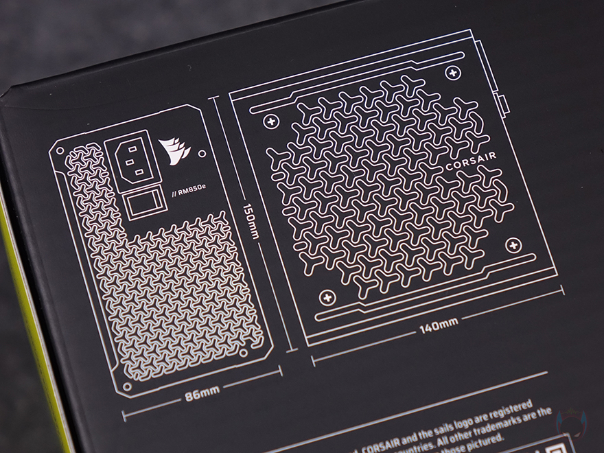 그럼, 본격적으로 커세어 RM850e ATX 3.1 파워서플라이를 살펴보는데, 먼저 본체 같은경우 크기는 바로 이전 모델인 ATX 3.0 버전의 모델과 동일하지만, 디자인에 변화가 좀 있습니다. 일단, RMe 시리즈는 ATX 3.0부터 최근 ATX 파워서플라이의 트렌드 중 하나인 콤팩트 크기를 적용하고 있어서, 이번 RM850e ATX 3.1 역시 140mm 깊이 길이로 출시되었으며, ATX 파워의 최소 깊이로 PC케이스에 공간 차지를 최소화되도록 해주죠. 그리고, 바깥쪽 후면부에는 안내 스피커가 부착되어 있는데, 제로팬 모드 지원 안내로 앞서 제품 박스에서 확인했듯이 Load 50% 이하까지는 팬이 작동하지 않는 무소음으로 작동됩니다.