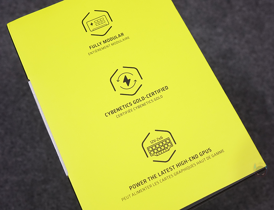 제품 패키지부터 살펴보면, 제품 박스는 전체 밀봉으로 처리되어 소비자입장에선 좀 더 판매제품에 신뢰를 가질 수 있도록 했습니다. 박스 전에는 제품 이미지와 함께 모델명, ATX 3.1 규격 적용, 사이버네틱스 등급 표기를 확인할 수 있는데, 새 규격으로 리버전 출시된거라 디자인은 기존과 동일하다는 걸 미리 알 수 있으며, 뒤에서 다시 확인하겠지만, 사이네틱스 등급은 팬 소음부분에서 한 단계 더 올라갔죠. 용량은 시작에서 언급했듯이 750W, 850W, 1000W 3가지로 출시되었습니다. 일반적으로 750W 용량은 메인스트림급에서 중급형 그래픽카드까지 사용되고, 850W 용량부터는 하이엔드 그래픽카드에 사용된다고 보면 되죠.