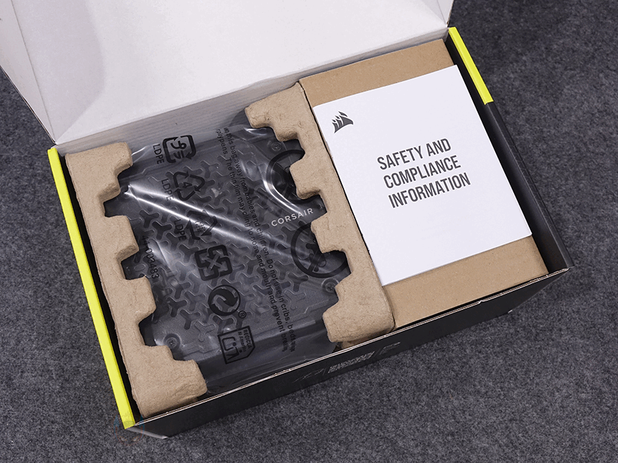박스를 열어보면, RM850e ATX 3.1 파워서플라이는 풀-모듈러 방식이기때문에, 본체와 케이블 따로 분리 포장되어 있으며, 본체는 비닐포장으로 처리, 나머지 포장재는 모두 종이로 사용되었습니다. 커세어 같은 경우 이미 친환경정책을 도입했기 때문에 자사 제품에 대부분 종이 포장재를 사용하고 있으며, 본체와 케이블을 제외한 나머지 부속품 포장에도 종이를 사용했습니다. 전체 제품 구성에는 RM850e ATX 3.1 파워서플라이 본체, 전원케이블, 나사, 케이블타이, 제품설명서, 분리형 케이블들로 이루어져 있으며, 전원케이블 역시 국내 정식출시되었기때문에 KC(전기용품안전) 인증을 받았습니다.