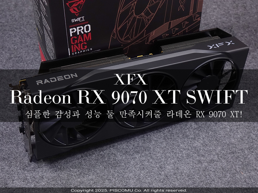 2025년 시작과 함께 최신 사양으로 조립 PC를 맞출려고는 소비자들이 늘어나고 있습니다. 작년 하반기 인텔과 AMD 모두 차세대 CPU를 출시했고, 최근 그래픽카드 시장도 Nvidia와 AMD가 최신 그래픽카드 출시하거나 출시를 앞두고 있기 때문이죠. AMD 그래픽카드 같은 경우에는 후자에 속하는데, 지난달 2월 28일에 공식 발표를 했고, 3월 6일에 판매 출시를 합니다. 바로, 라데온 RX 9000 시리즈이자 첫 번째 주자로 출시되는 라데온 RX 9070 시리즈죠. 라데온 RX 9070 시리즈는 이전 세대 시리즈들과 마찬가지로 상위 모델 라데온 RX 9070 XT와 하위모델 라데온 RX 9070 2가지로 출시됩니다. AMD 그래픽카드 제조사들 역시 출시일에 맞춰서 모든 준비를 마쳤고, 공식 홈페이지에도 제품 정보를 공개한 상황인데, 대표적인 AMD 그래픽카드 퍼스트 벤더 제조사 XFX 역시 비레퍼런스 라데온 RX 9070 시리즈를 갖추고 나옵니다. XFX는 자사 그래픽카드를 3~4등급으로 나뉘어서 라인업을 갖추는데, 오늘 이 중 가장 기본 베이스가 되는 SWIFT 라인업으로 출시되는 XFX 라데온 RX 9070 XT SWIFT 그래픽카드를 만나보도록 하겠습니다. 그럼,