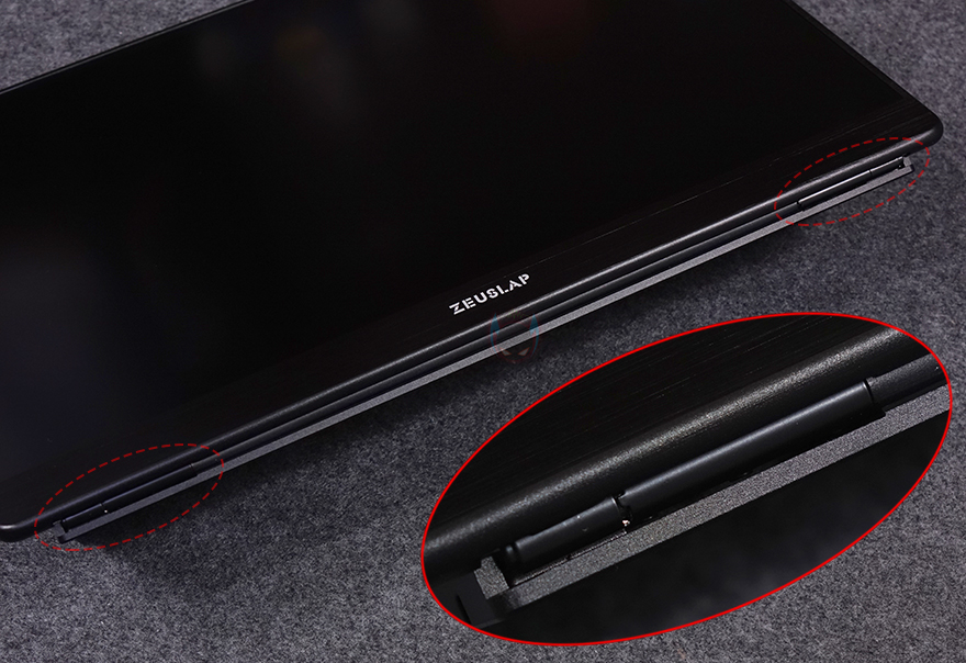 그럼, 제우스랩(Zeuslap) P16KF 포터블 모니터를 살펴보면, 화면크기는 시작에서 언급했듯이 P16 시리즈에 속한 모델로 16인치 크기를 가졌습니다. 뒤에서 확인하겠지만, 화면비율은 16:10이라 해상도는 3840x2400이죠. 패널은 IPS이며, 약간의 반사광정도가 있기 때문에 논글레어보다는 안티글레어에 가깝다 할 수 있습니다. 그리고, 화면 아래 베젤 중앙에는 ZEUSLAP 로고를 새겨놨으며, 측면에서 보면 6.8mm의 얇은 두께를 확인할 수 있습니다.