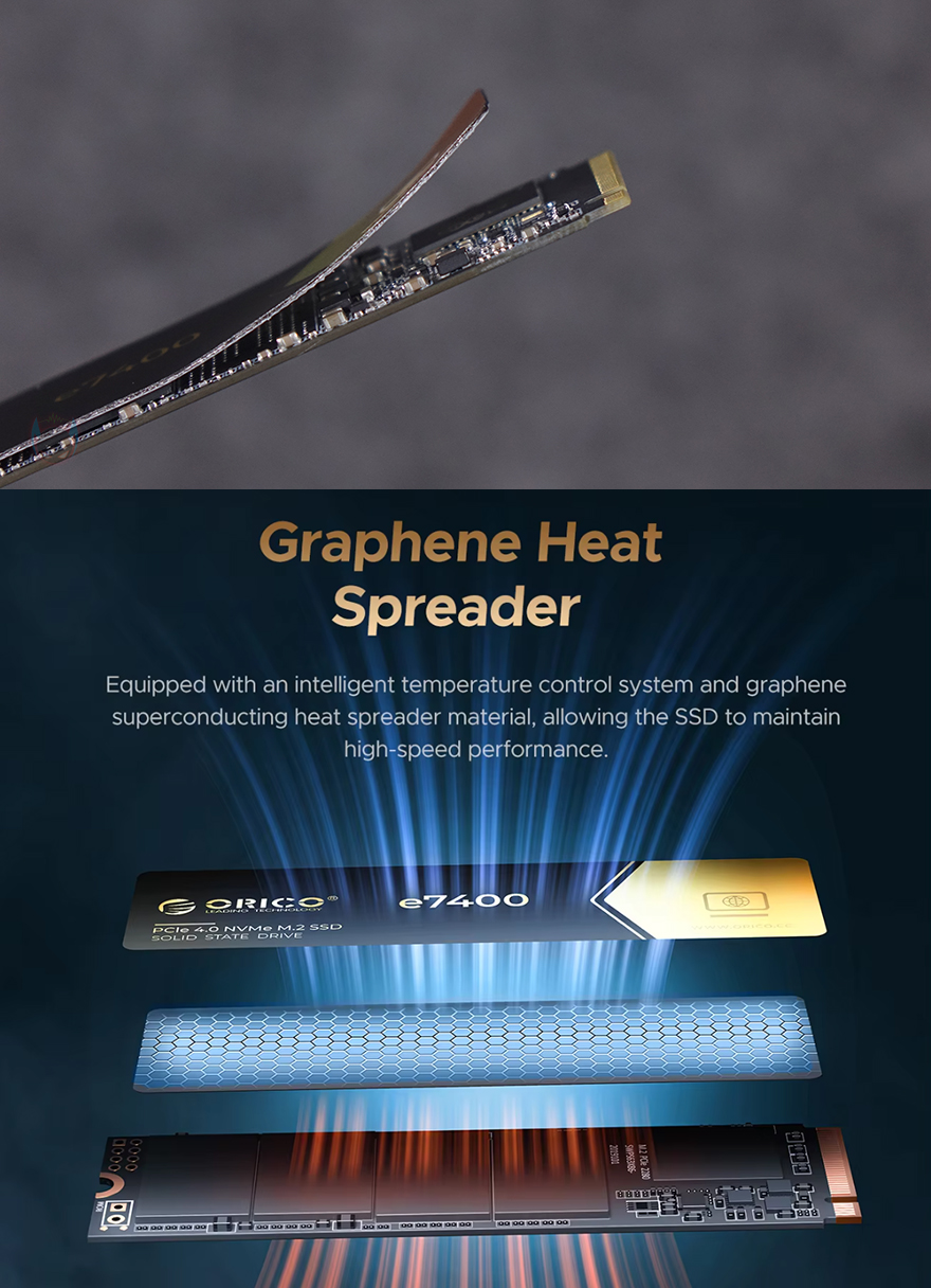 국내 물가상승과 고환율 영향으로 최근 국내 소비자들이 글로벌 쇼핑플랫폼 알리익스프레스를 통해 PC부품을 구입하는 경우가 많아졌습니다. 저장장치 역시 예외는 아닌데, 최근 알리익스프레스에서 매월 진행되는 할인행사 때마다 SSD 제품을 구입하는 소비자가 늘어나고 있죠. 그리고, 대표적인 브랜드가 바로 오리코(ORICO)입니다. 오리코는 최근 내장/외장형의 저장장치 제품들을 적극적으로 출시하고 있으며, 앞전에 피스커뮤를 통해 가장 최근에 출시된 내장형 SSD의 새로운 시리즈 e-Series를 언급하면서, e3500(https://piscomu.com/314941)과 e5000(https://piscomu.com/314962)을 만나봤습니다. 그리고, 이번 시간에는 e-Series의 마지막 모델이자 최상급 모델을 만나볼텐데 바로, e7400이죠. 그럼, 오리코의 PCIe 4.0 NVMe SSD e7400을 살펴보도록 하겠습니다.