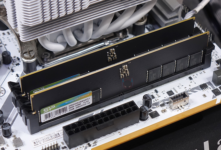 직접, 실리콘파워 XPOWER Pulse DDR5 메모리를 사용해 보면, 일단, 방열판이 한쪽에만 장착되었기 때문에, 메인보드에 장착했을 때 방열판 방향이 후방향으로 장착되는 걸 확인할 수 있습니다. 호불호까지는 아니지만, 소비자입장에선 약간의 그래도 바깥쪽 방향으로 배치되었으면 좀 더 보기에 낫지 않았나 생각이 듭니다. 그리고, XPOWER Pulse DDR5 같은 경우 앞서 패키지에서 언급했듯이 싱글(Single)과 듀얼 키트(Dual kit) 상품 2가지로 출시되었으며, 단일 기준으로 용량은 16GB, 32GB 2가지이고, 듀얼 키트로 최대 64GB 구성을 하고 있습니다. 또한, 클럭은5600/6000/6400 MHz 3가지 클럭으로 출시되었죠. 물론, 클럭은 모두 인텔 X.M.P/AMD EXPO 프로파일값으로 적용되었습니다. 리뷰에 사용된 모델은 최상급 구성으로 64GB(32GBx2)용량에 6400MHz 클럭입니다.
