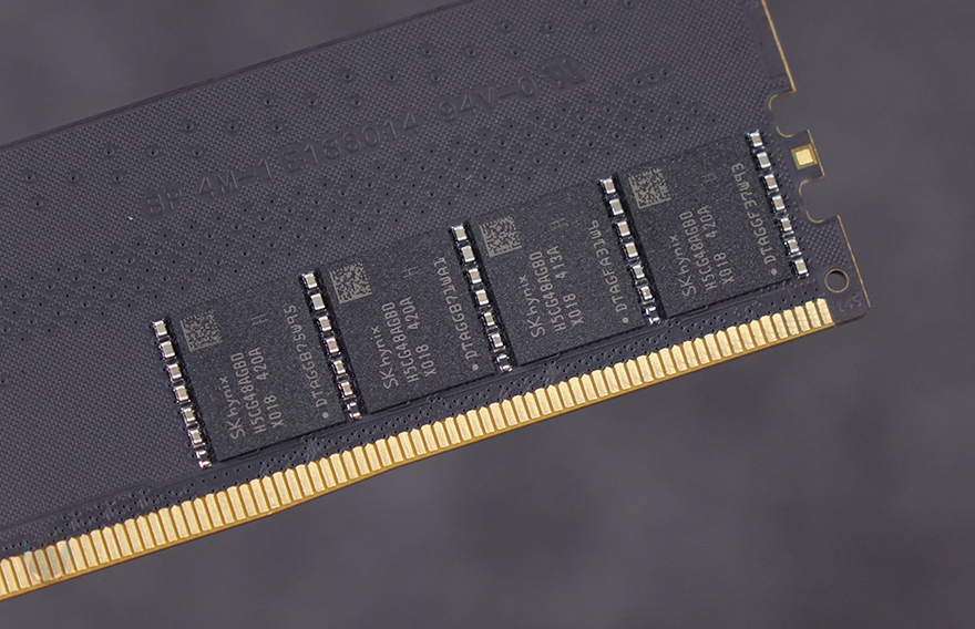 그럼, 실리콘파워 XPOWER Pulse DDR5 메모리는 살펴보면, 디자인은 DDR4의 Pulse와 거의 동일합니다. 유일한 차이점이라면 바로 방열판(Heatsink)의 색상이 실버에서 블랙으로 바뀌었죠. 그리고, Pulse 메모리의 특징은 바로 이 방열판이 한 면에만 적용되었다는 점입니다. 반대편은 방열판이 없는 형태죠. 좀 더 정확히는 DDR5에서도부터 적용되는 PMIC칩이 있는 면쪽에 방열판을 적용했습니다. 뒤에서 다시 언급하겠지만, 아무래도 현재 DDR5는 대부분 SK 하이닉스(Hynix) 메모리 모듈을 사용하고, 고클럭을 자랑하기 때문에 발열 부분을 고려해 이를 컨트롤하는 칩이 배치된 부분에 방열판을 적용했다볼 수 있습니다.