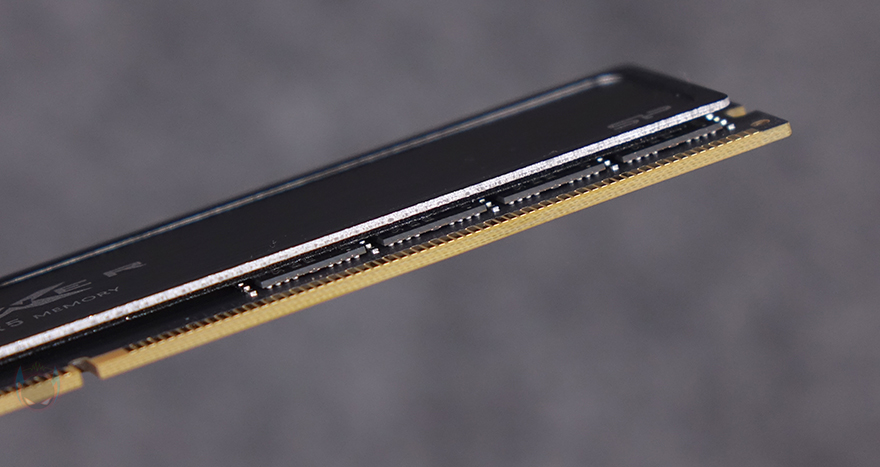 좀 더 자세히 살펴보면, 방열판 중앙에는 XPOWER 로고를 새겨놨으며, 비스듬하게 보면 방열판 표면에 헤어라인효과까지 적용된 것을 확인할 수 있습니다. 단순하지만 그래도 세련된 느낌을 살린 거죠. 그리고, 방열판이 한쪽에만 적용되었기 때문에 전체 제품 두께도 5.2mm에 불과하고, 높이도 31.3mm로 사실상 타워형 CPU쿨러 장착했을 때 간섭은 발생하지 않는다볼 수 있죠. 방열판이 없는 반대쪽에는 해당 모델의 클럭과 용량 표기의 라벨 스티커와 함께 메모리 모듈은 역시 현재 가장 많이 사용하는 SK 하이닉스(Hynix) 칩을 사용했다라는 걸 쉽게 확인할 수 있습니다.