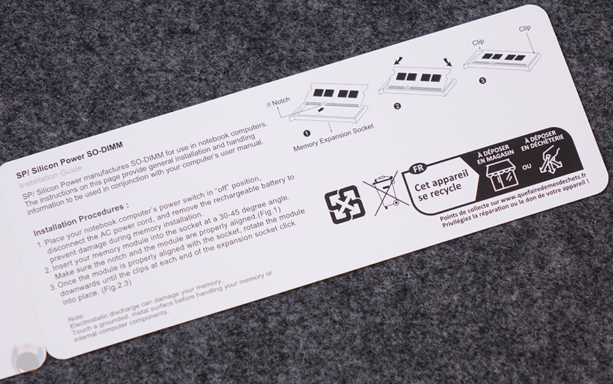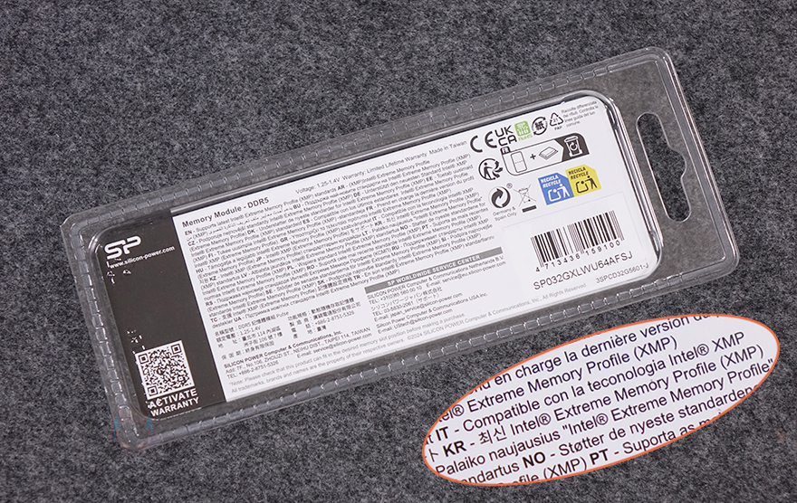 제품 패키지는 앞서 만난 Zenith, Storm DDR5 처럼 박스 패키지가 아닌 일반 메모리형태 그러니깐 방열판이 없는 기본 메모리 형태에서 주로 볼 수 있는 투명-캡 방식의 패키지를 적용하고 있습니다. 하지만, 내부에 포장된 Pulse DDR5 메모리는 보면 방열판이 부착된걸 미리 확인할 수 있죠. 그리고, Pulse DDR5 같은 경우 싱글(Single)/듀얼(Dual) 키트 상품으로 출시되었기 때문에 키트에 맞춰서 포장이 적용되는데, 리뷰에선 싱글 키트 상품으로 접했으며, 단일 용량은 최대 32GB까지 있습니다. 그래서, 내부에 포장된 메모리 디자인을 미리 확인하는 것 외에도 용량과 클럭 표시도 추가로 확인할 수 있으며, 단종되기 전까지 보장받을 수 있는 평생제한보장(limited lifetime warranty) 표기도 확인할 수 있습니다. 후면에는 한국어를 포함해 다국적 언어로 인텔 X.M.P 프로파일이 적용된 제품이라고 언급하고 있으며, 패키지는 뜯으면 메모리 외에 다른 구성품은 없고, 배경 포장지 안쪽에는 장착법에 대해 간략하게 내용을 담고 있습니다. 조금 아쉬운 점이라면, 내용이 SODIMM 장착법이라는 거죠.