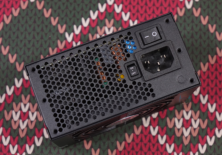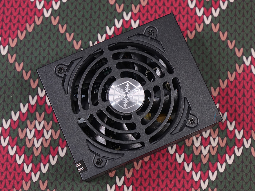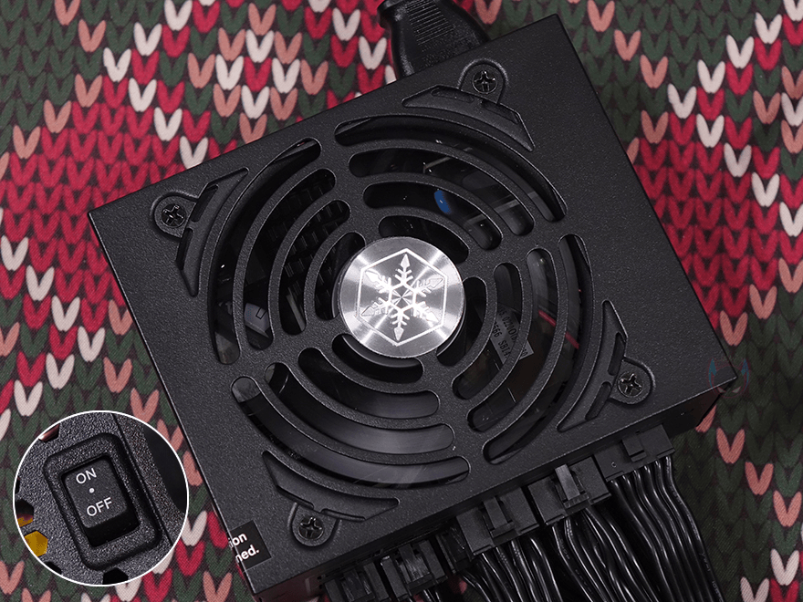 본격적으로 실버스톤의 Extreme 850R Platinum SFX 파워서플라이를 살펴보면, 먼저 본체 크기는 125(W) ×63.5(H) ×100(D) mm로 표준 SFX 규격 사이즈를 가졌습니다. 850W 용량이면 꽤 큰 용량이기 때문에 일부 경쟁사 제품들은 SFX보다 좀 더 큰 SFX-L 사이즈를 적용하는 경우도 있지만, Extreme 850R Platinum는 전형적인 크기를 유지했죠. 상단에는 쿨링시스템으로 에어홀 처리와 함께 내부에 92mm 팬이 장착된 걸 확인할 수 있는데, 앞서 제품 박스에서 확인했듯이 FDB 베어링 팬입니다. 그리고, 본체 후면에는 배기 역할로 벌집모양의 에어홀 디자인이 적용되어 있으며, 전원케이블과 연결되는 포트 옆에는 On/Off 스위치가 배치되어 있는데, 바로 제로팬 모드 스위치로 사용자가 선택할 수 있게 지원했습니다.