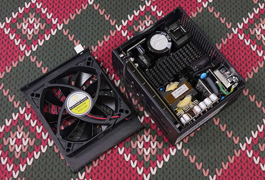 Extreme 850R Platinum 파워서플라이를 사용하기 전에 내부를 잠깐 살펴보면, 쿨링 역할의 92mm 팬은 앞서 언급했듯이 FDB(Fluid Dynamic Bearing) 팬으로 파워서플라이 제품에서 많이 사용되는 GLOBE FAN사 제품을 사용했으며, 100% Load 최고 용량 사용 시 2000 RPM 이상으로 작동됩니다. 내부에는 SFX 크기를 유지하면서 일본산 메인 캐패시터와 발열 해결을 위한 방열판(Heatsink), 스위칭트랜스, Active PFC, 고주파음 최소화의 EMI 필터 등이 탑재된 걸 확인할 수 있습니다. 참고로, 보호회로 같은 경우에도 OCP/OPP/OVP/SCP/UVP/OTP 6가지가 적용되었습니다.
