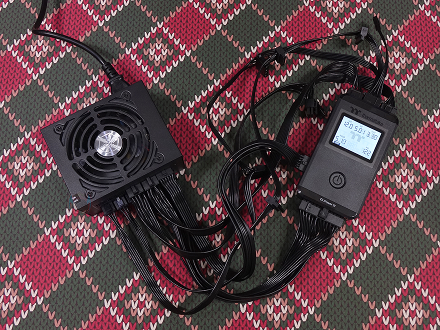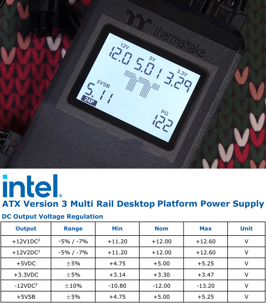 이제, 실버스톤의 Extreme 850R Platinum 파워서플라이를 시스템 구성을 통해 직접 사용해 보는데, 그전에 정상작동 확인을 위한 기본 테스트기로 확인해 보면, 각 전압 출력 모두 인텔 파워서플라이 가이드에서 제시하는 표준 범위에서 정상적으로 출력되는 걸 확인할 수 있습니다. 또한, 앞서 후면에서 확인한 제로팬 모드를 사용하면 150W 이하 사용량 전까지는 팬리스 모드로 팬이 작동하지 않으며, 제로팬 모드를 끄면, 전원이 들어오자마자 팬이 작동되는 걸 확인할 수 있죠. 시스템 환경에 따라서 소비자가 선택하면 됩니다.