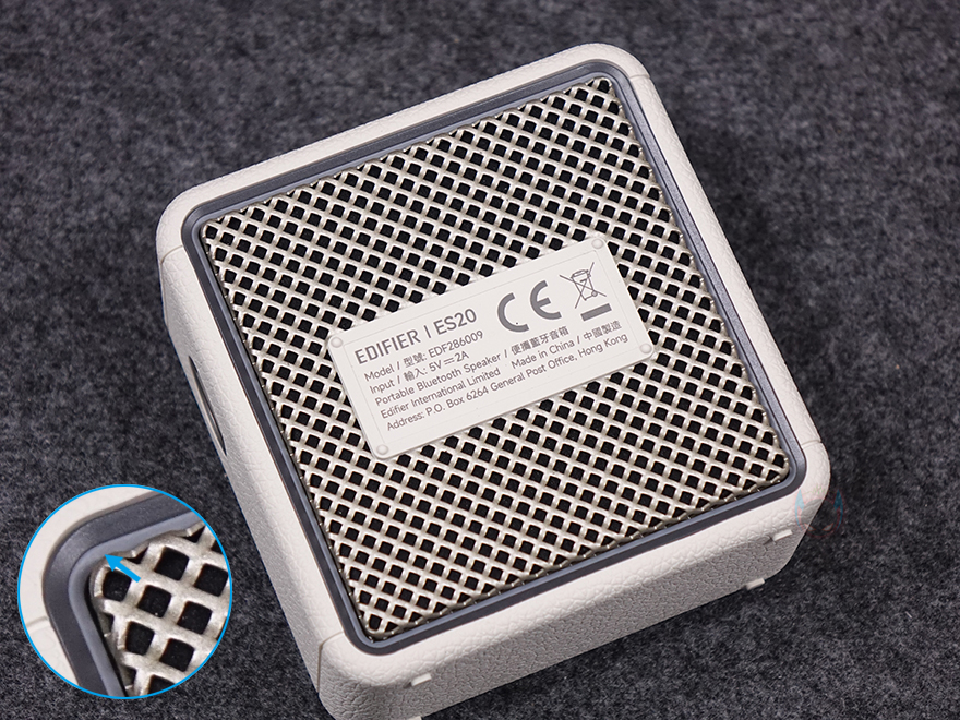 그럼, 본격적으로 에디파이어(Edifier) ES20 포터블 블루투스 스피커(portable bluetooth speaker)를 살펴보면, 일단 색상은 앞서 ES60 모델에서도 언급했지만, ES시리즈 제품들은 모두 2가지 색상으로 출시되었습니다. 그래서, ES20 역시 블랙(Black)과 아이보리(Ivory) 2가지 색상이며, 에디파이어 공식스토어에서 구입 시 선택할 수 있습니다. 크기는 90.4(W)×93.7(H)×49.7(D)mm로 앞서 만난 ES60과 비교해 보면 한눈에 봐도 절반 수준이라는 걸 알 수 있는데, 실제 성인 손바닥에 올려놓고 보면 더 작다란 걸 쉽게 실감합니다. 그리고, 무게도 약 330g으로 휴대 시 전혀 부담되지 않죠. 그리고, 스피커 인클로저 질감은 ES60과 마찬가지로 고무질감에 가죽 느낌이 나도록 디자인했습니다.